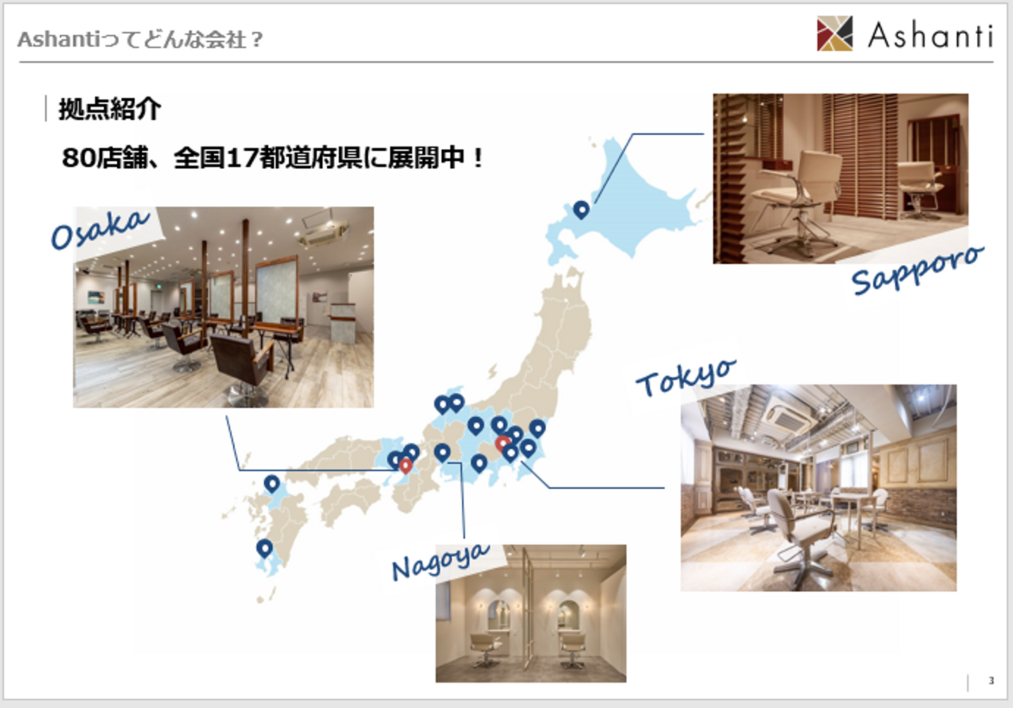 株式会社アシャンティは、東京・神奈川をはじめ北海道から九州まで美容室・美容院を展開しています。SNSで話題のトレンドスタイルをエリア最低価格で提供。通いやすい価格と高品質の施術でたくさんのお客様に選ばれています。2026年より全国100店舗突破を目指し、3カ年計画を進行中。美容室業界のホワイト企業を目指し、アシスタントアカデミーや休眠美容師・ブランク美容師の現場復帰システムなど、美容業界の課題解決と美容業界の働き方改革を推進しています。