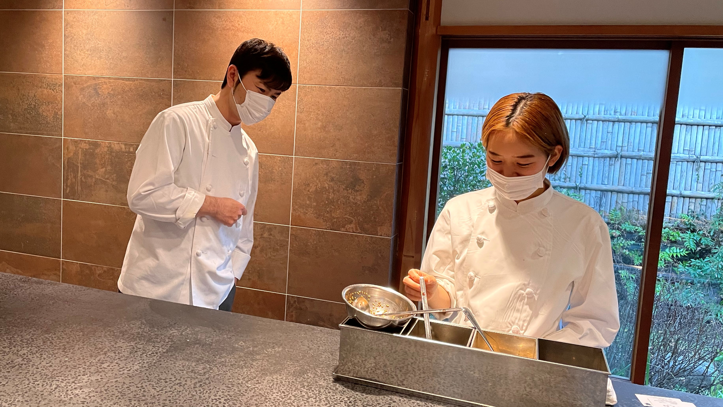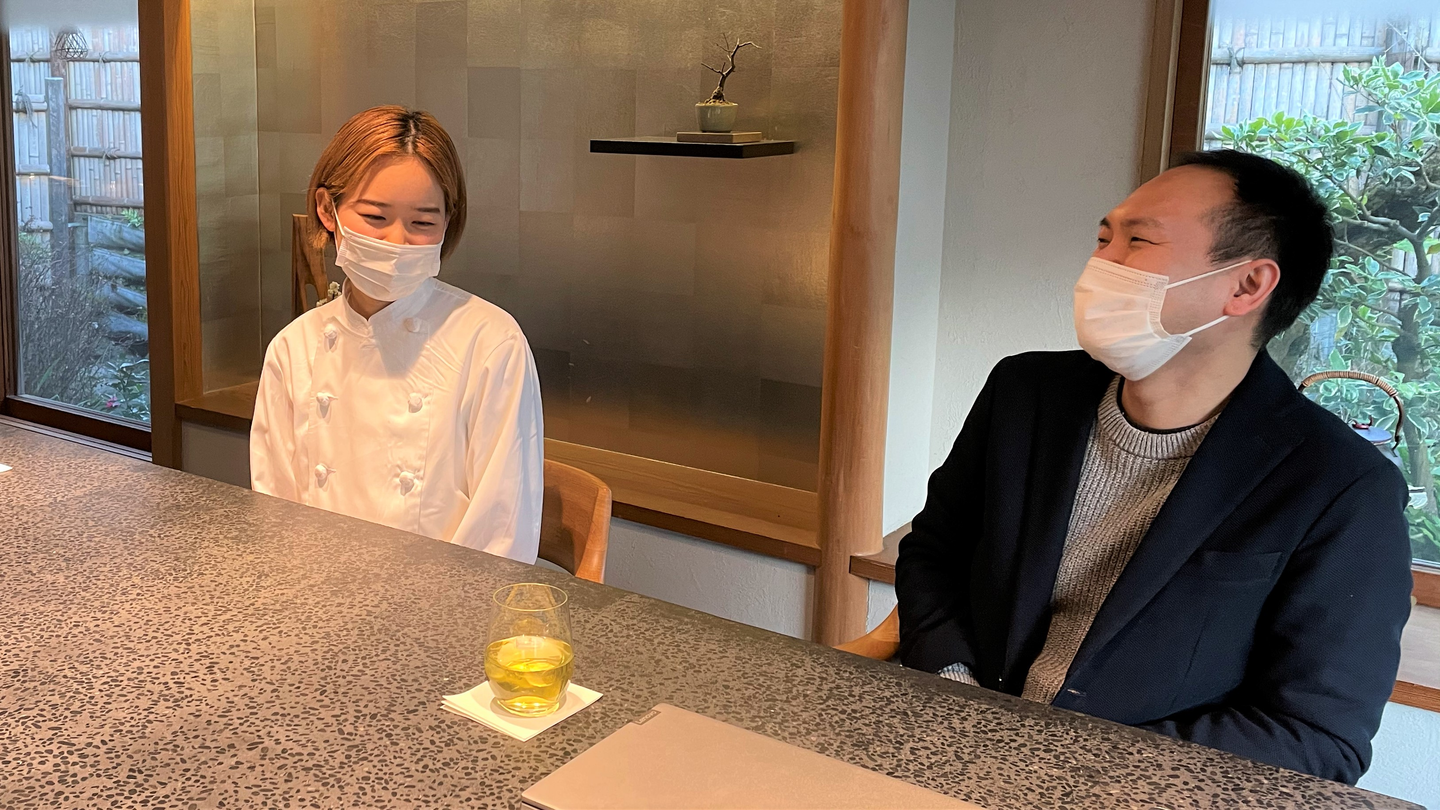 シェフもカウンターに立ちながらお客様と会話をしたり、「旬の食材が~」とか「前回こうだったのでこうしてみました」とか、お客様にお料理の細かい説明をすることもあるんです。