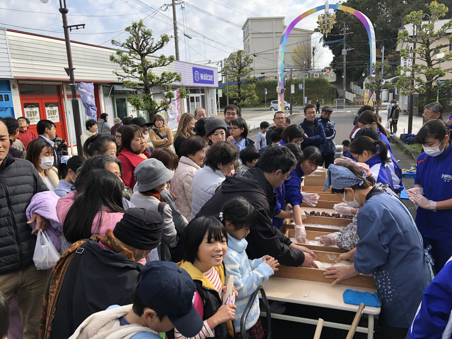 ※「こゆ朝市」2019年12月、中学校の子どもたちが餅つき&ふるまいをしてくれました!