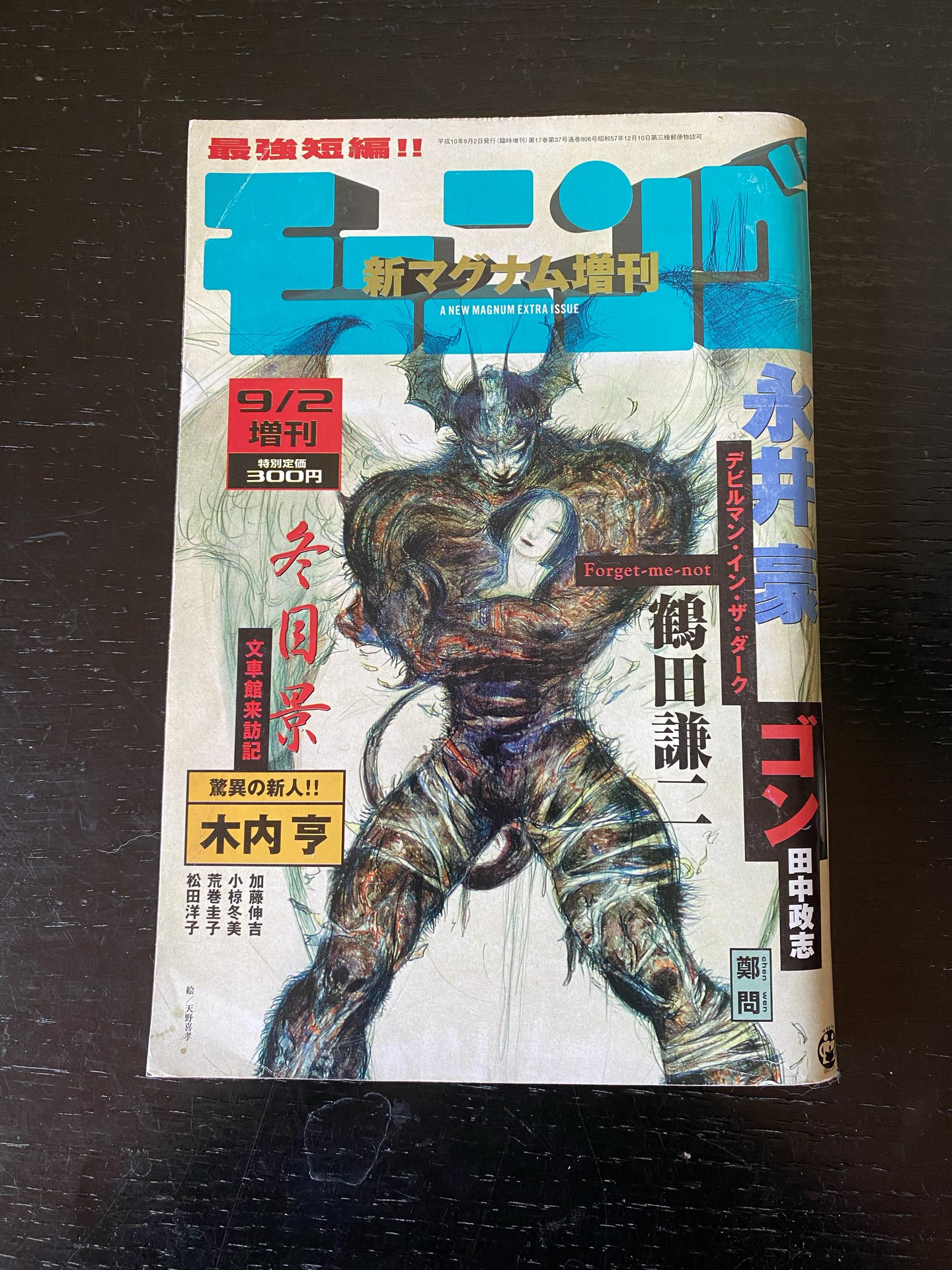 写真のモーニング表紙は天野喜孝先生が描いたデビルマンと牧村美樹。
