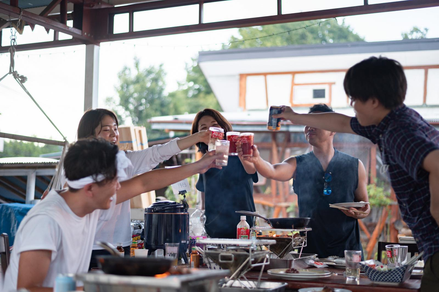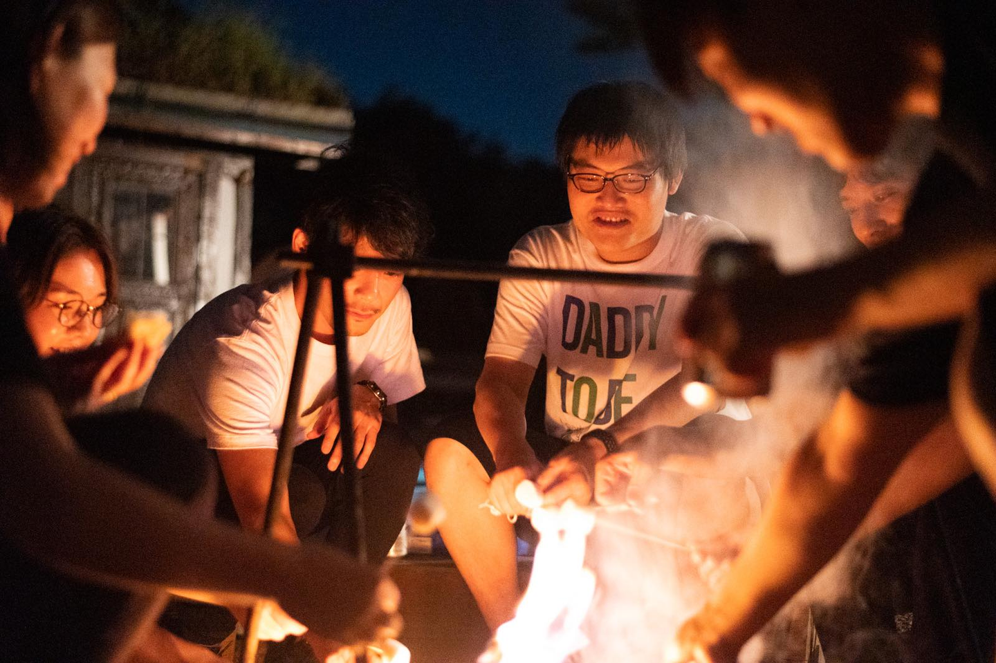 その後ご当地ラーメンを経て早めにチェックイン。みんなでテントを張りつつ、隣にある馬小屋の馬さんと触れ合ったり、スケートボードで遊んだり、飲み始めたり、オンラインで仕事したり自由に過ごしつつ、夜のメインイベントであるBBQ&花火へ。雰囲気も良くみんなでお喋り。相互理解や会社の未来について、まじめに議論。