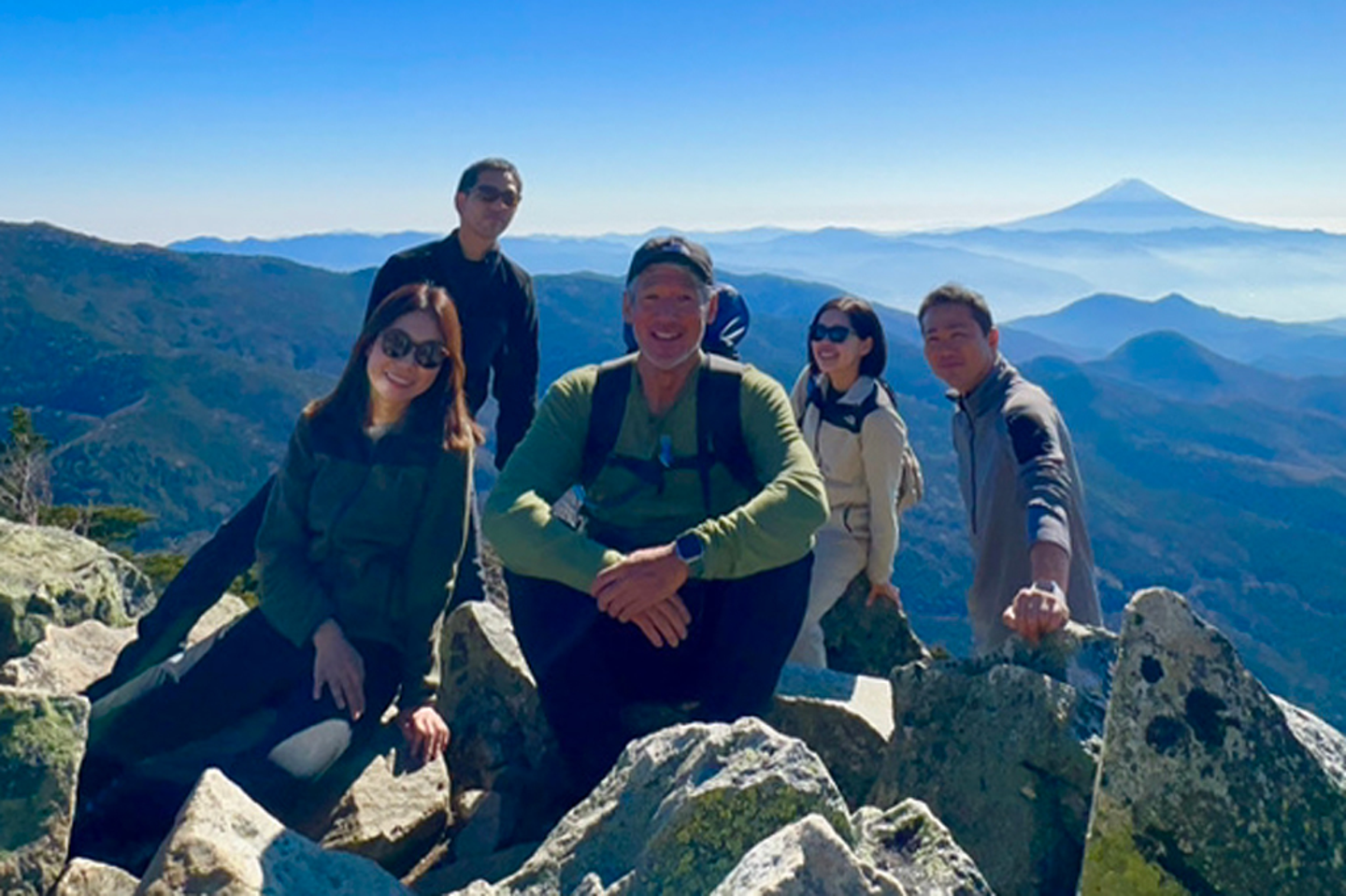 趣味は標高2500m前後の山に登ることで、夏山・冬山問わず、本気モードで登頂してます。スノボの板を担いで登って、滑って降りて来ることもありますね。最近はひとりだとつまらないので、同じくカスタマーサクセスの熊野さんや志田ちゃんなど会社の仲間を集めて登山しています。高見さんとも行きましたよ!