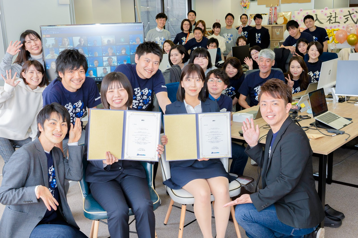 本年度から記念すべき第1期新卒を迎えたドクターメイトでは、はじめての新卒入社式を行いました。
