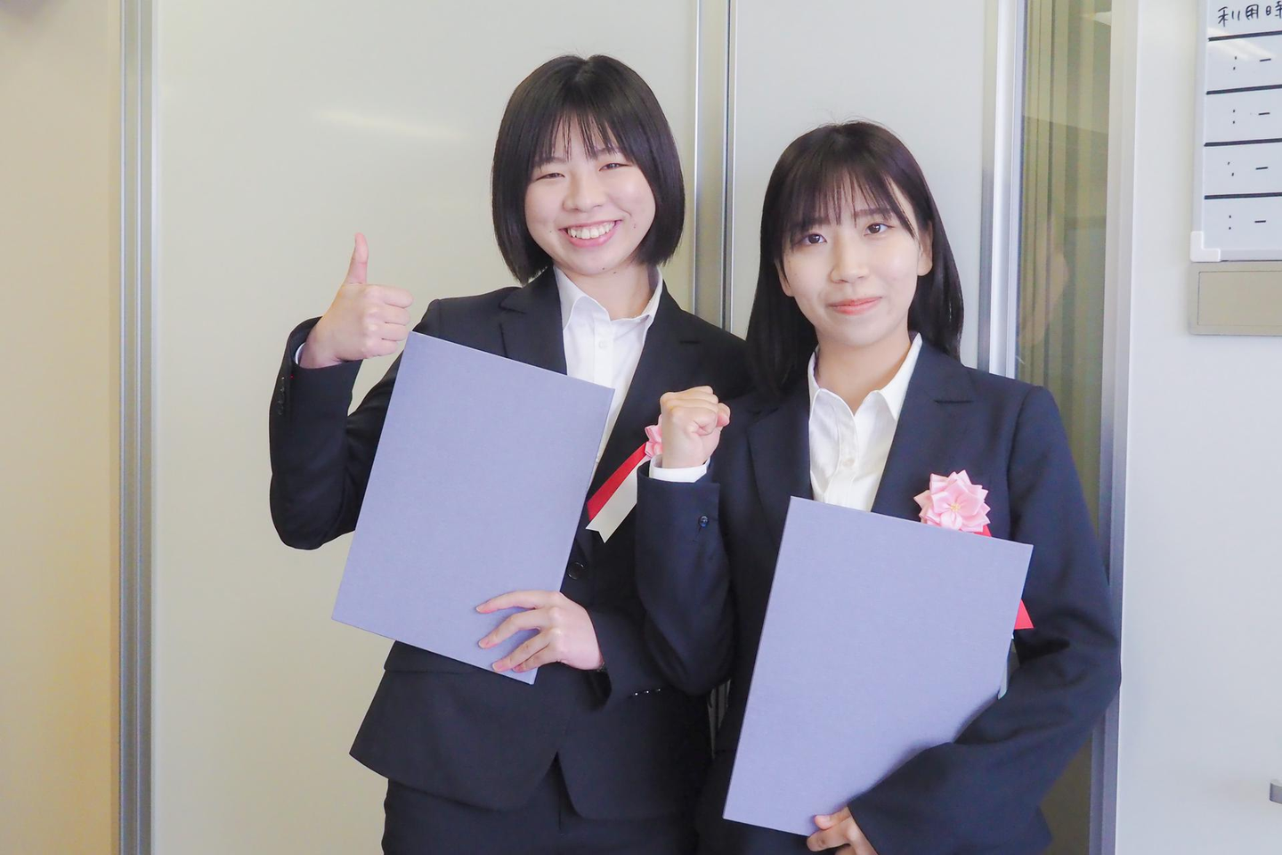 代表 青柳さんから入社の辞令が手渡され、いよいよ社会人になる実感が湧いてきた様子……!