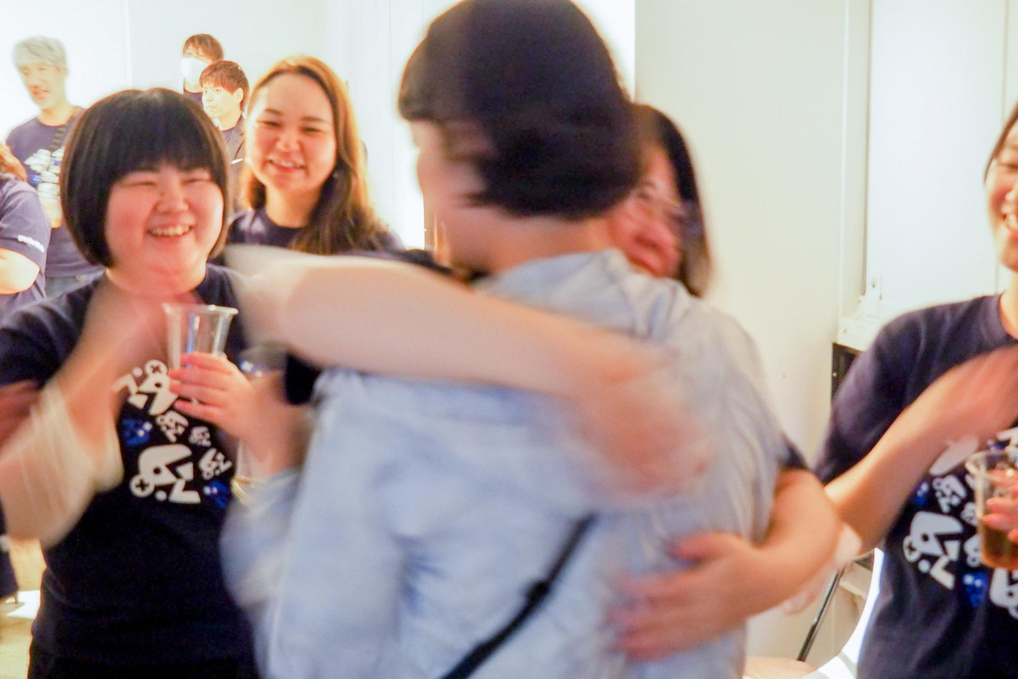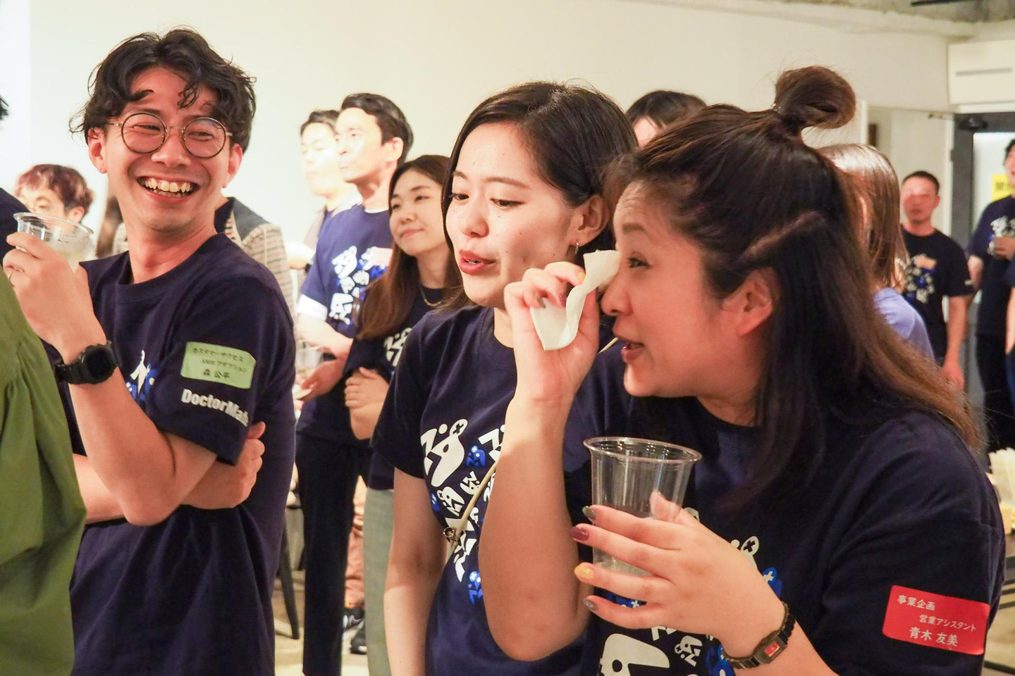 名前が呼ばれると、本人よりも早く、同じ部署のメンバーたちが大喜び!