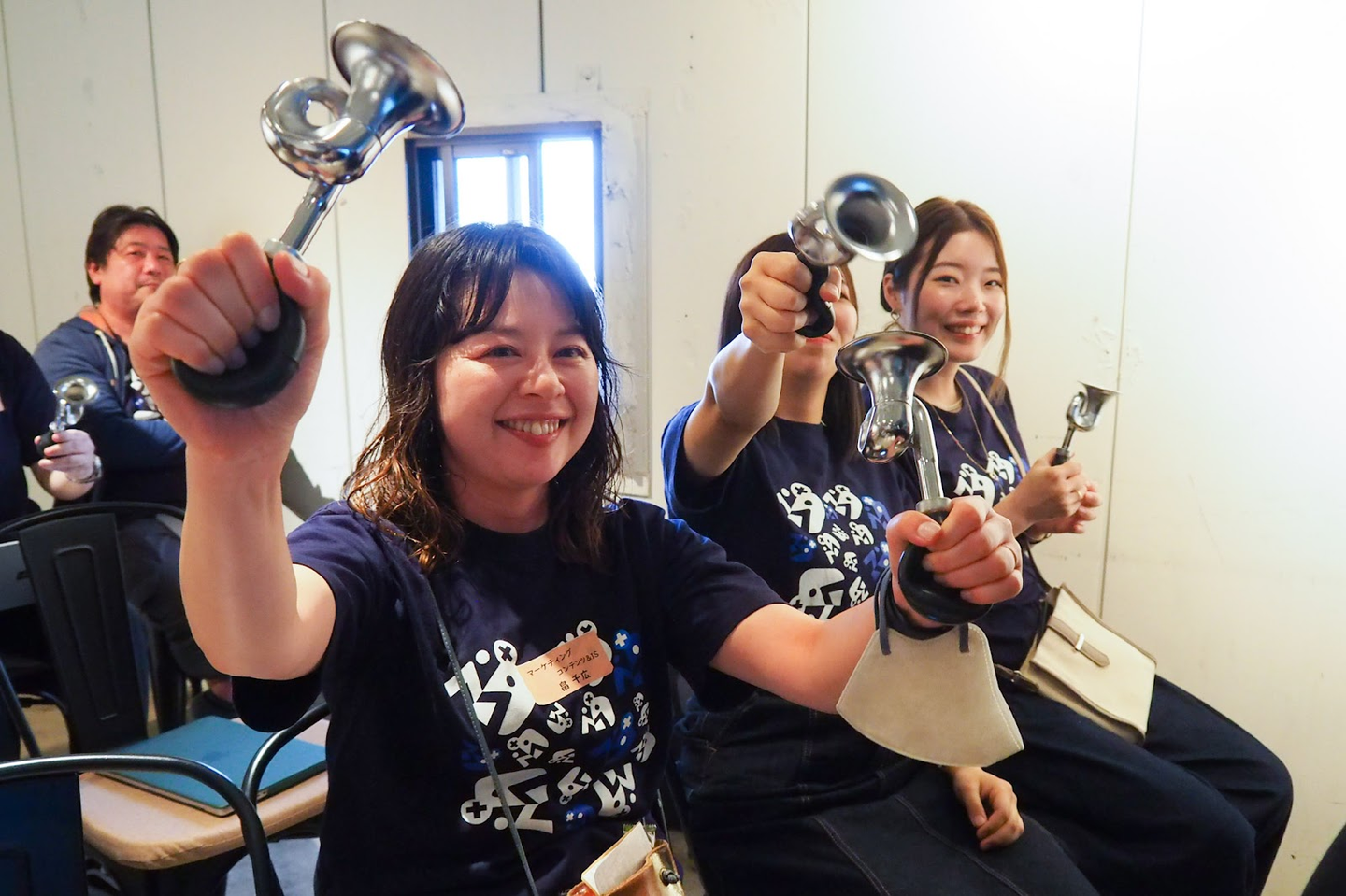 ラッパを鳴らして応援し、全力で盛り上げるのがドクターメイト流!