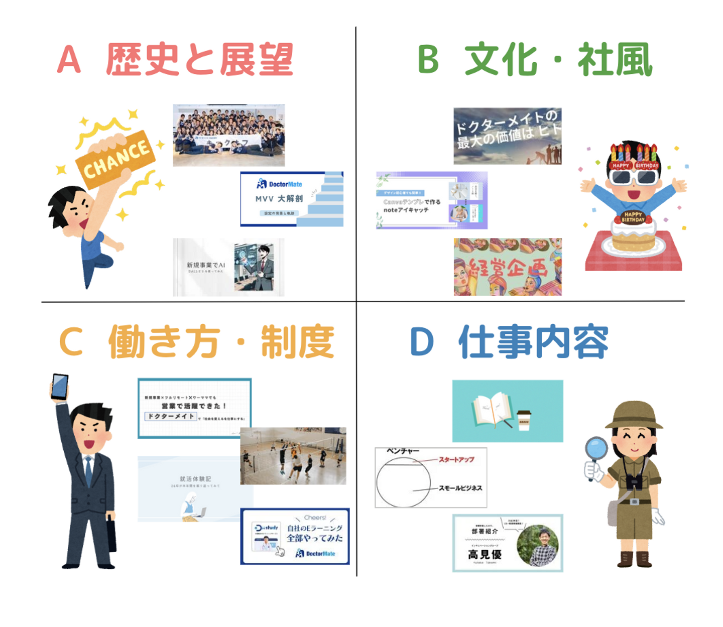 個人的に何度も読んでしまっているくらいキャッチーで面白い記事です(笑)!「業務内容がわかりにくくて話しかけてもらえない」という課題を解決すべく、経営企画の熊野さんがあの手この手のアイデアを披露してくれました。経営企画の業務内容だけでなく、ドクターメイトのメンバーの雰囲気を知りたい方におすすめです。