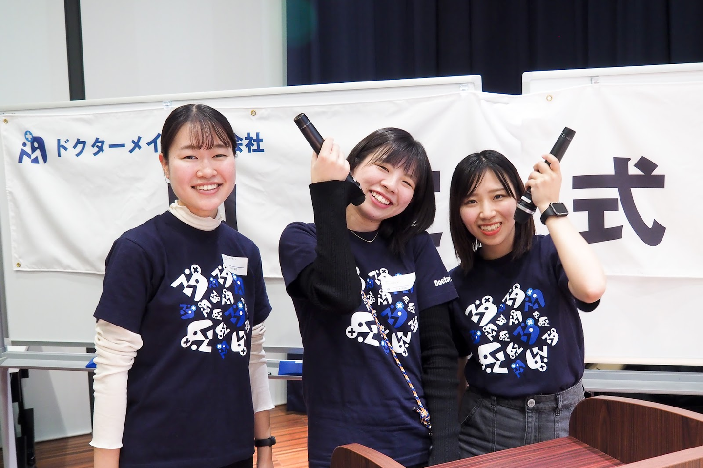 ついに私たちの出番である新卒2期生を迎える内定式。司会はもちろん新卒1期生の私たち!と、インターンの高久さんも手伝ってくれました!