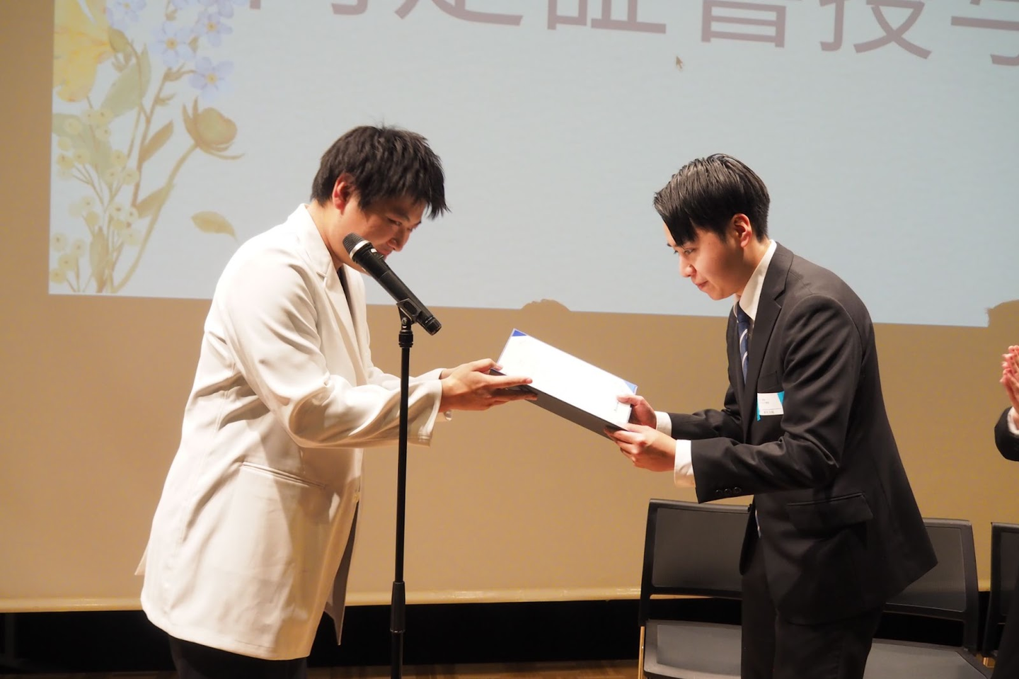 白衣を着た代表医師からの内定証書授与。ドクターメイトでしか味わえない光景は、私たちも今でも覚えています。2期生みんなの印象にも残ればいいな〜。