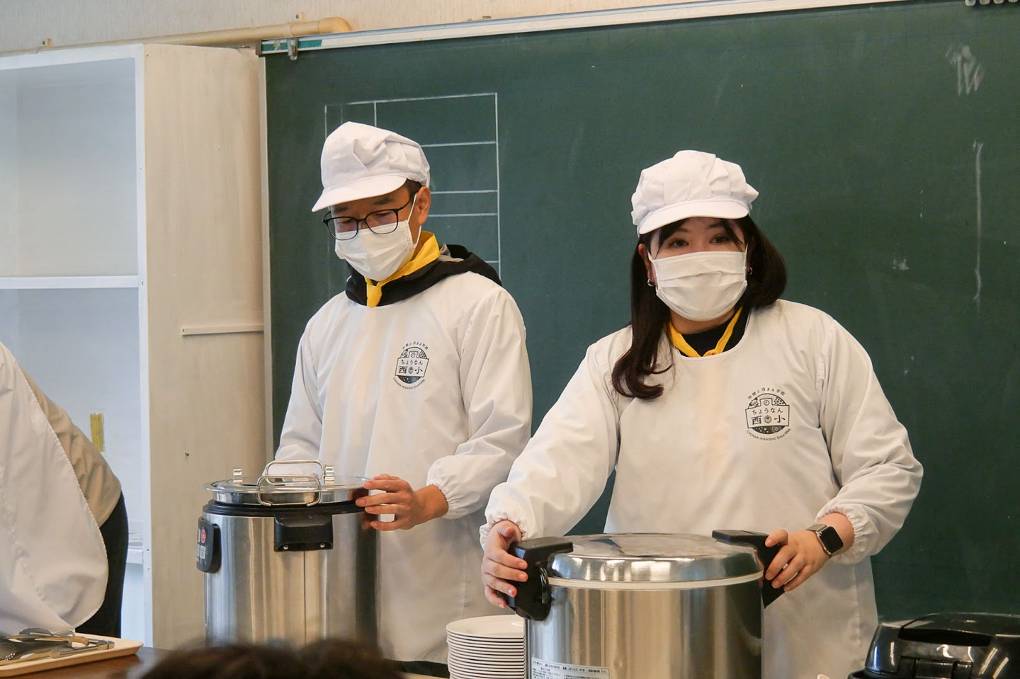 二種目目が終わったところでお昼休憩です。懐かしい給食着に身を包んで配膳をしてくれたのは、給食当番のみなさんです!