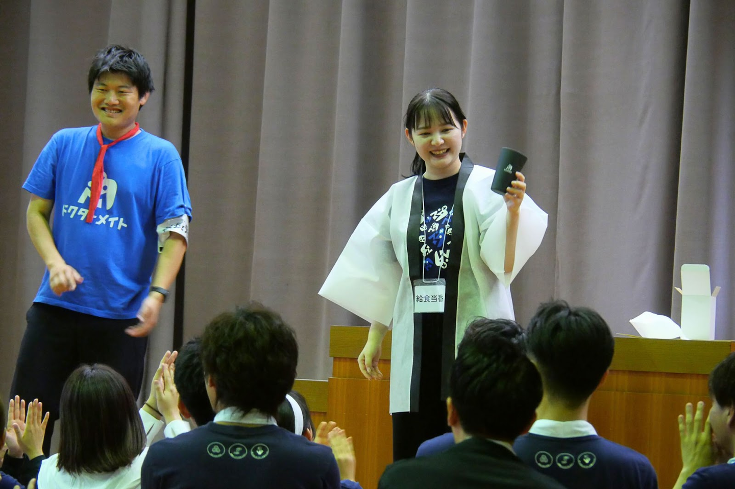 すべての種目を終え、優勝したのは白チームです!白チームにはご褒美として特製のドクターメイトタンブラーが贈られました。