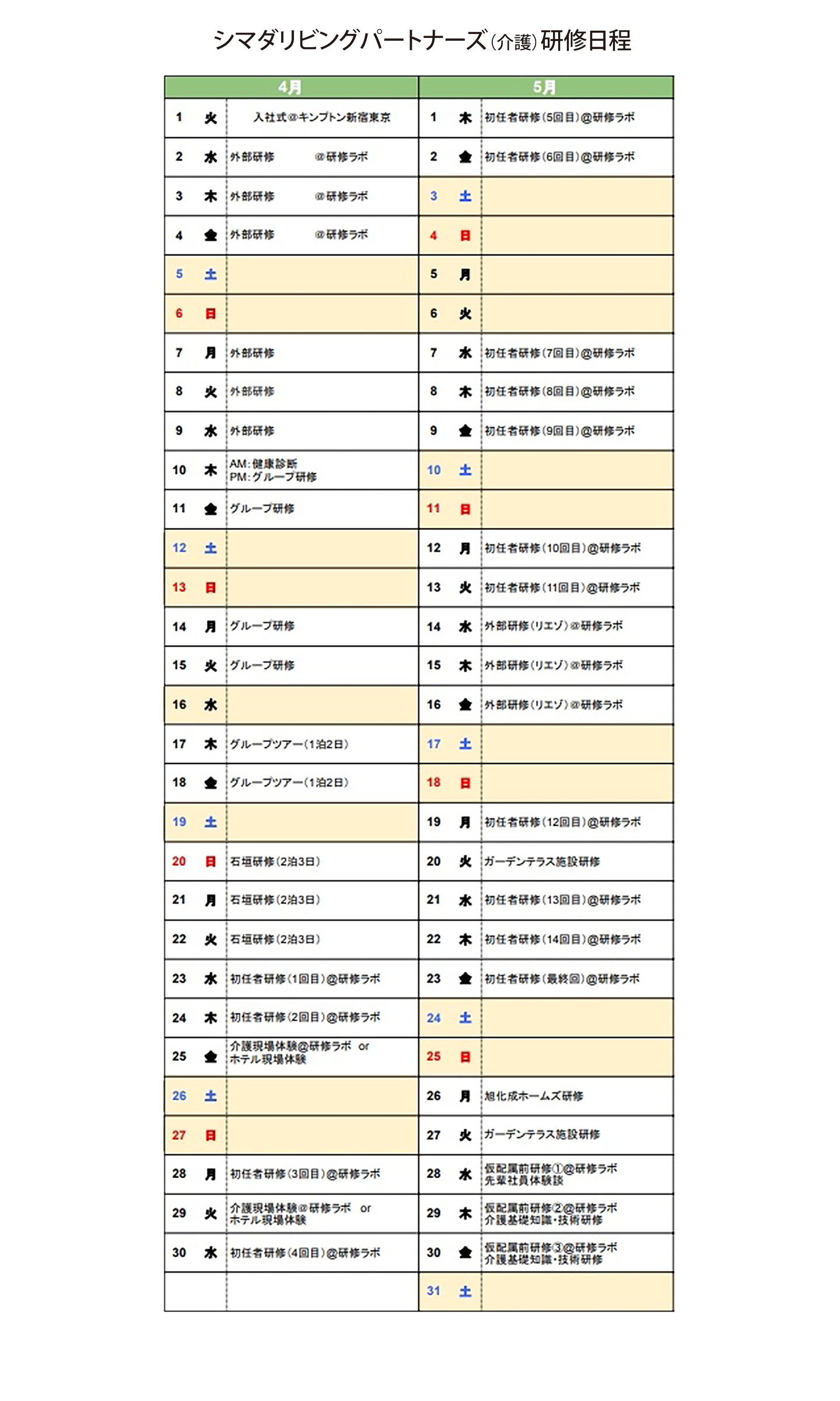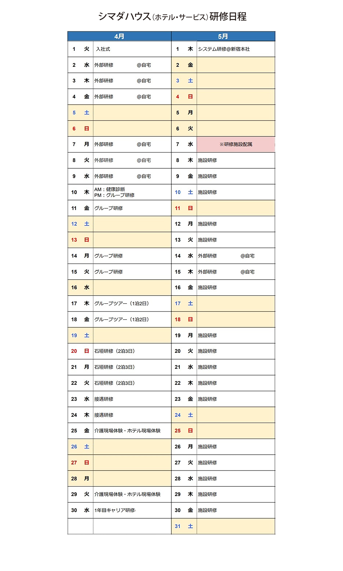 入社日から仮配属となる6月1日までは以下ようなスケジュールです。