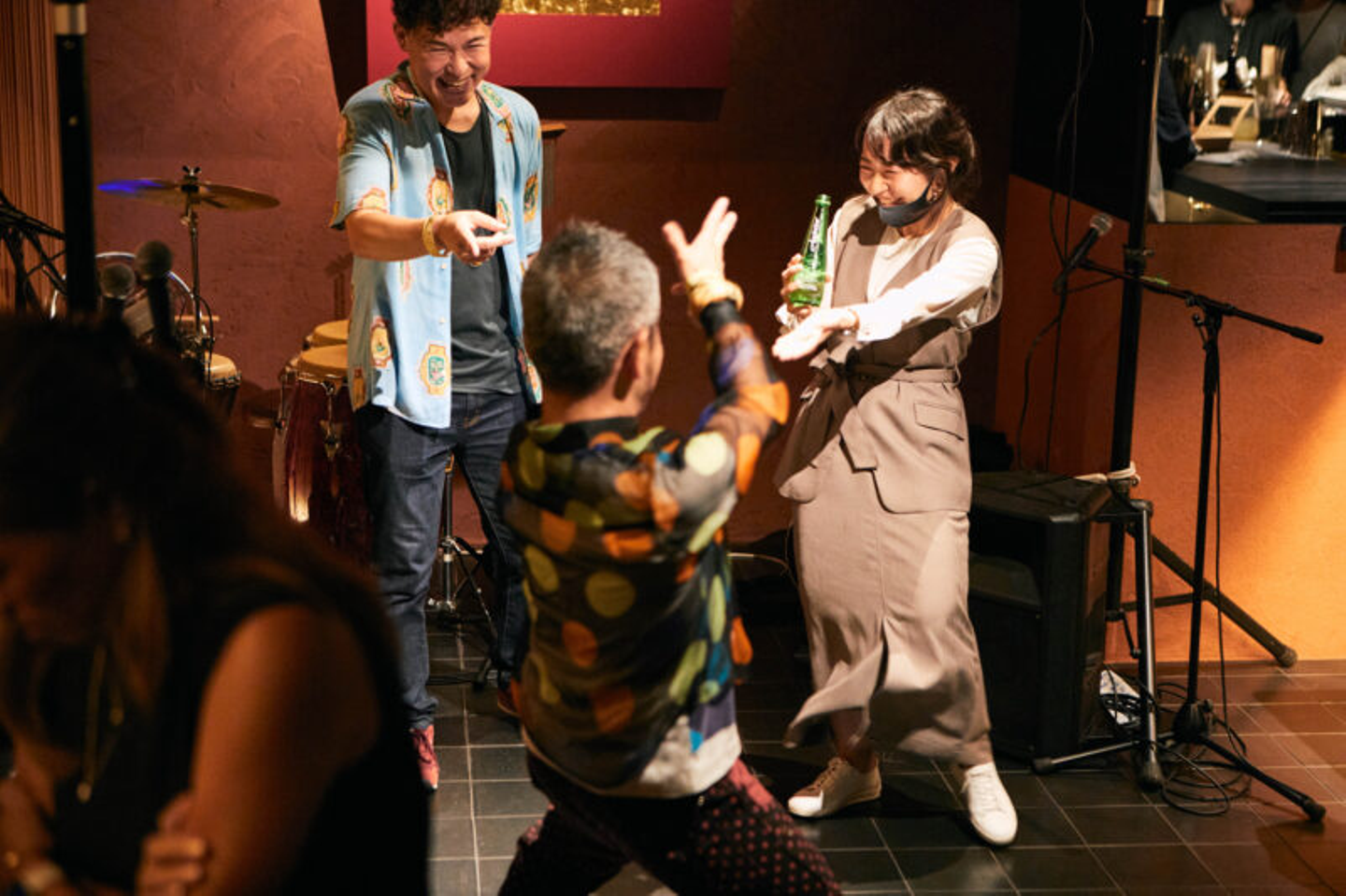 LAVAさんの音楽に、自然とグラスを片手に体を揺らしている人たちが大勢。