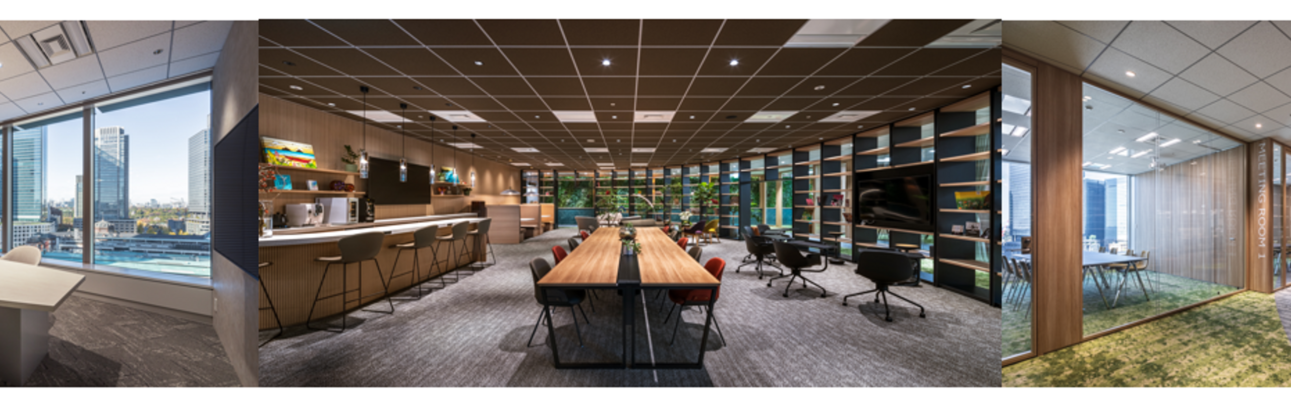 東京オフィスの東京ミッドタウン八重洲への移転やコロナ禍など、働く場所のあり方を考えるきっかけが重なったこともあり、オフィス環境も大きく見直しました。東京オフィスでは部門や所属に関係なくコミュニケーションが生まれる環境を目指し、フリーアドレスを導入。内装もお互いの働く姿を目にすることができるように見通しの良い開放的なデザインにしたりと、こだわりを持った場づくりをしています。