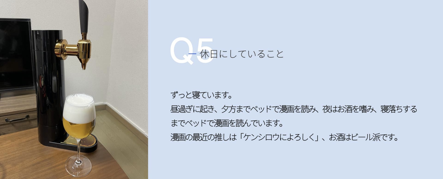 前職ではシステム保守がメインだったため、新しい環境で開発にチャレンジしたいと思い転職しました。アルバスは、元請であること、自社での開発であることが決め手でした。現在は在宅勤務ですが、都庁近くのビルにオフィスがあるってすごいなと思ったのも理由の一つです。笑