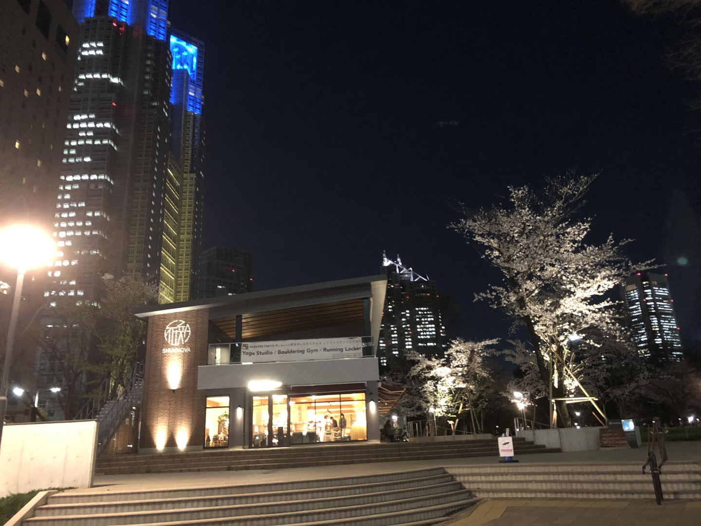 今回は、本社オフィスの前にある新宿中央公園の夜桜の風景をご紹介します。