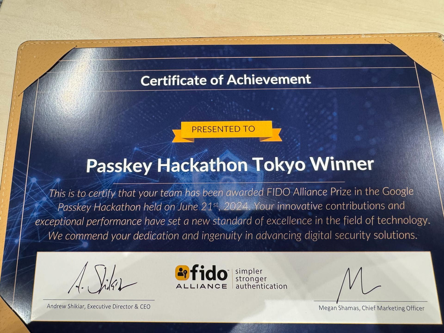その結果、優秀作品に与えられる「FIDOアライアンス賞」を受賞しました。受賞の理由としては「一番ユーザーのペインを考えていた」というありがたいお言葉を頂きました。駅前や駅の改札など、素早くログインしたいタイミングにパスキーを導入したことを、評価いただいたようです。