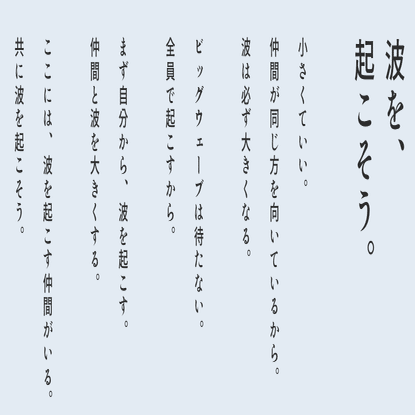 私達が向き合っている課題は、放っておいたらいつまでも悪化の一途をたどります。だからこそ、背中を預けあえる仲間とともに、そうでない、新しい未来を作っていきたい。
