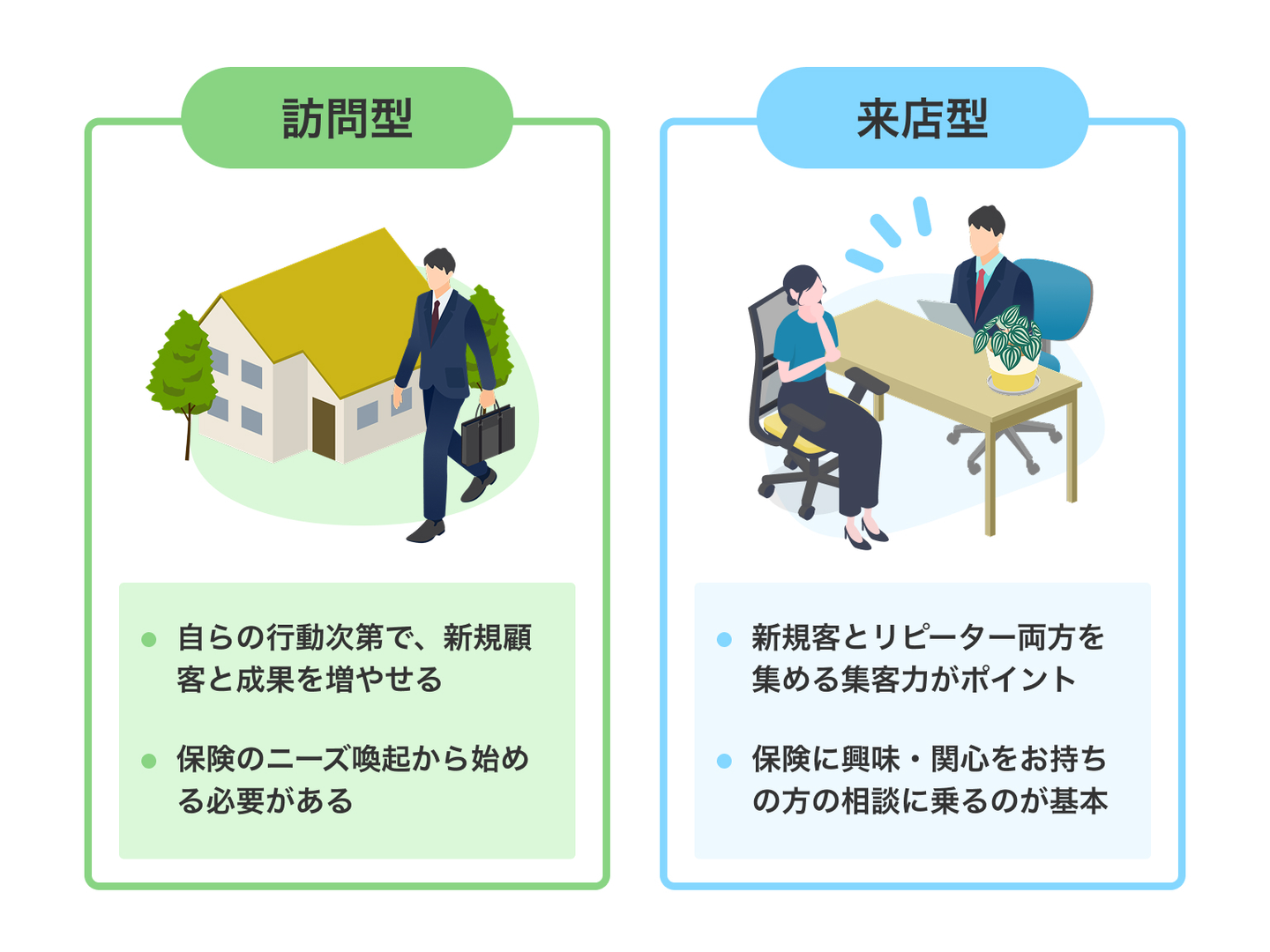 仕事と一口に言っても、その働き方やお客さまとの関係性はさまざまです。特に保険業界では、「訪問型」と「来店型」という2つの営業スタイルがあり、それぞれに異なる魅力とやりがいがあります。