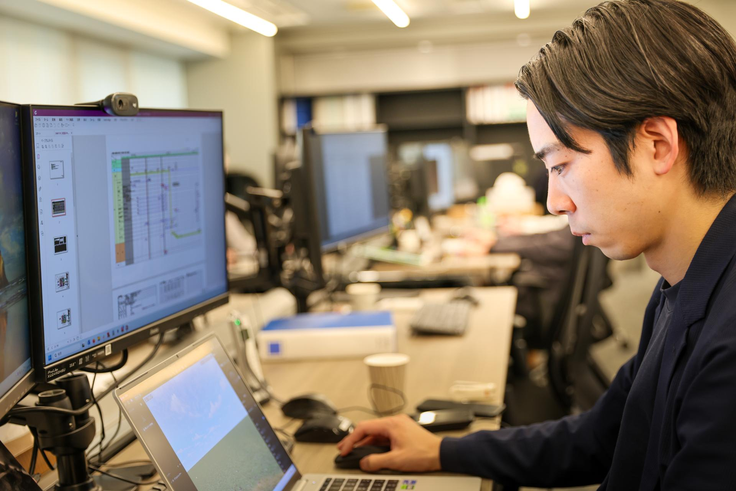 Field Design Architects は社員一人一人が最大のパフォーマンスを出せるよう、常に最適な環境を作ることを考えています。CAFEで仕事をすることをコンセプトに、20種類のコーヒー、ミネラルウォーター、社内BGM、アロマなどリラックスできる環境を作っています。