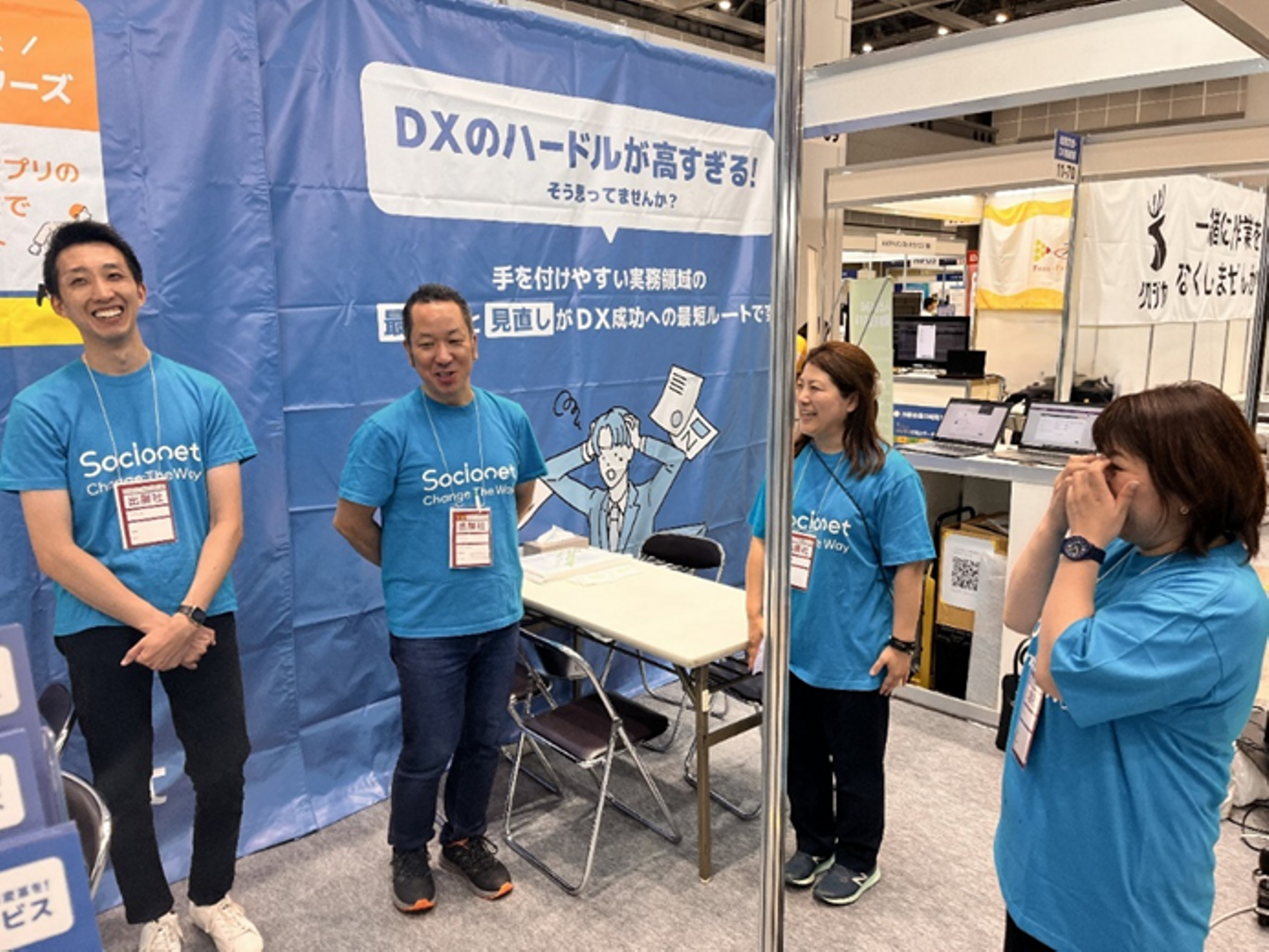 また、呼び込みなどの声かけでDXサービス内容を紹介させていただくなど、多くの方にソシオネットという会社を知っていただけた2日間となりました。