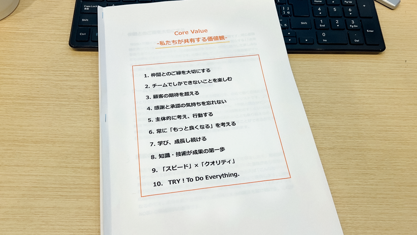 NOBUでは毎朝コアバリューをみんなで読み合わせするという習慣があります!
