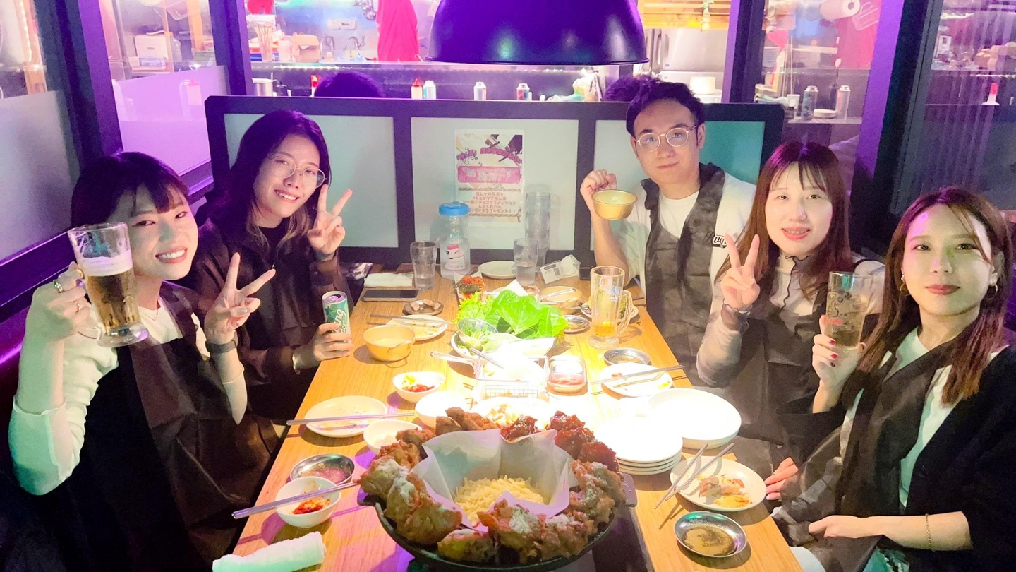 歓迎会はみんなで韓国料理屋さんへ!サムギョプサルと念願のUFOチキンを堪能しながら、楽しいひとときを過ごしました🍗中崎さんも新しい環境に少しずつ馴染んでいる様子で、チーム全体でのこれからの活躍がますます楽しみです!