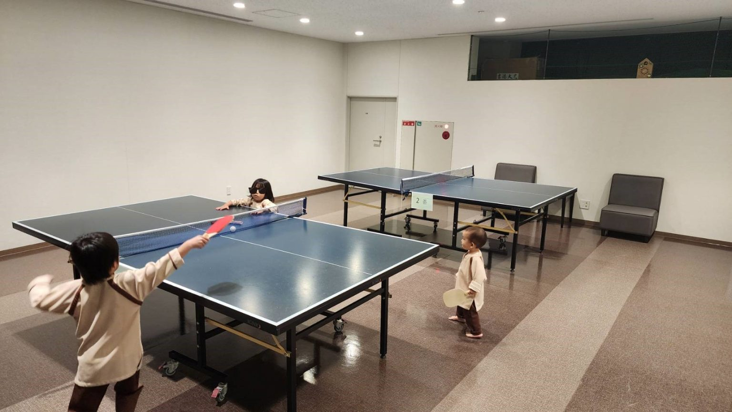 子供らも自分たちも今は食べれなさそうだったから、一旦部屋に持って帰ることにして、予約していた卓球場へ!