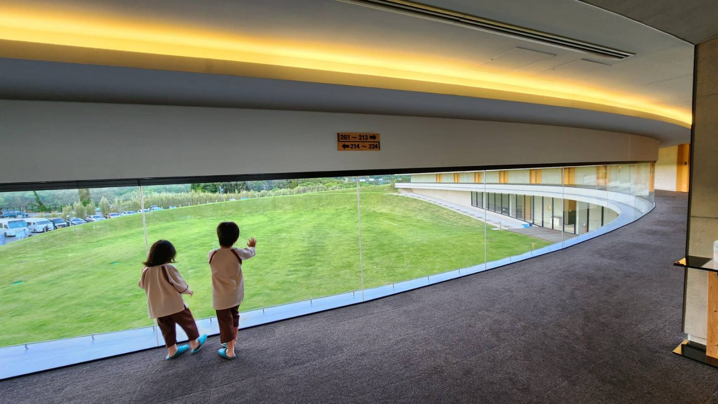 部屋の前の廊下も気に入っていたみたいで、しばらく景色を眺めていた。