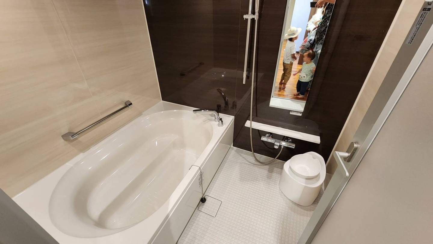 脱衣所におむつ用ごみ箱も設置されているので未就学児でも安心して楽しめる!