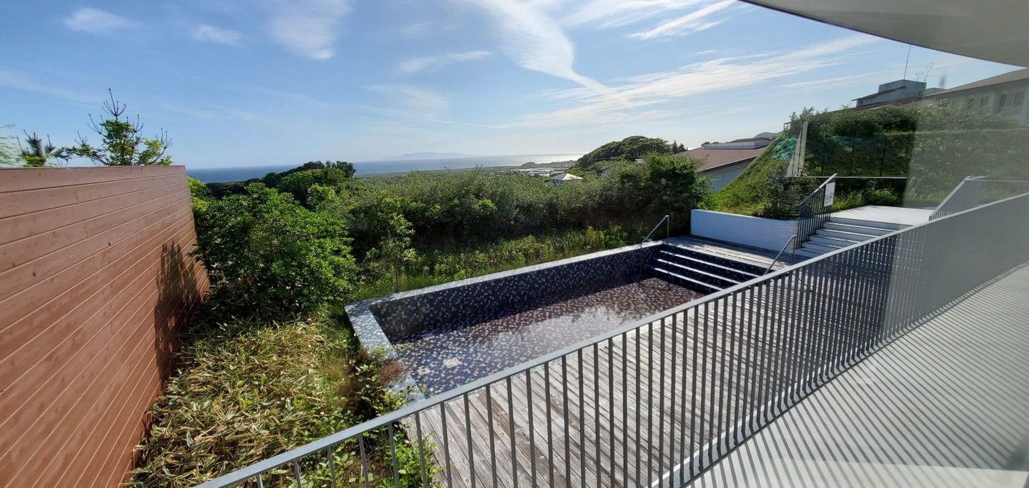 露天風呂に浸かりながらだと景色は全く見えないけれど、立てば少し見えるくらい!
