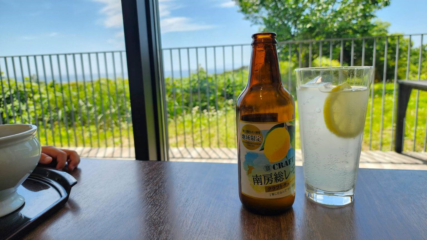 飲み物は景色に合わせて地元の檸檬で作ったクラフトチューハイで!