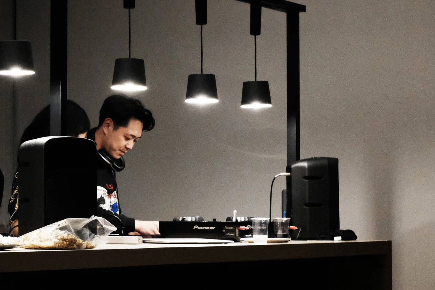 本社オフィス1Fに部費で購入したDJブースがあるので、「やりたい!」といえばいつでもイベントを開催できます。たまにゲストがくることも。