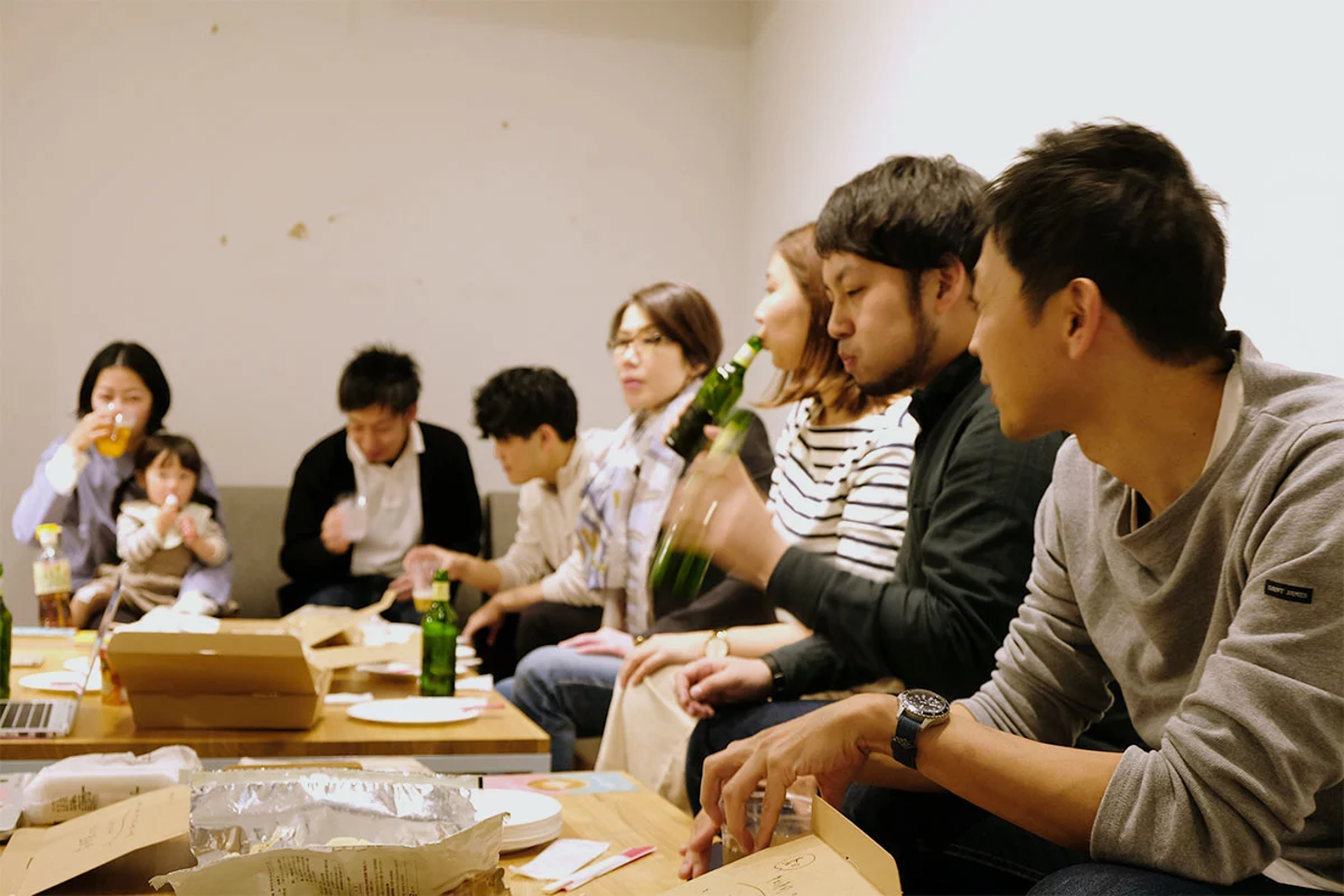 適度なアルコールと軽食、そして店内のオープンな雰囲気を媒介にして、インフォバーングループ各社からの参加者と店舗スタッフ間で、楽しくかつ活発な意見交換が行われました。