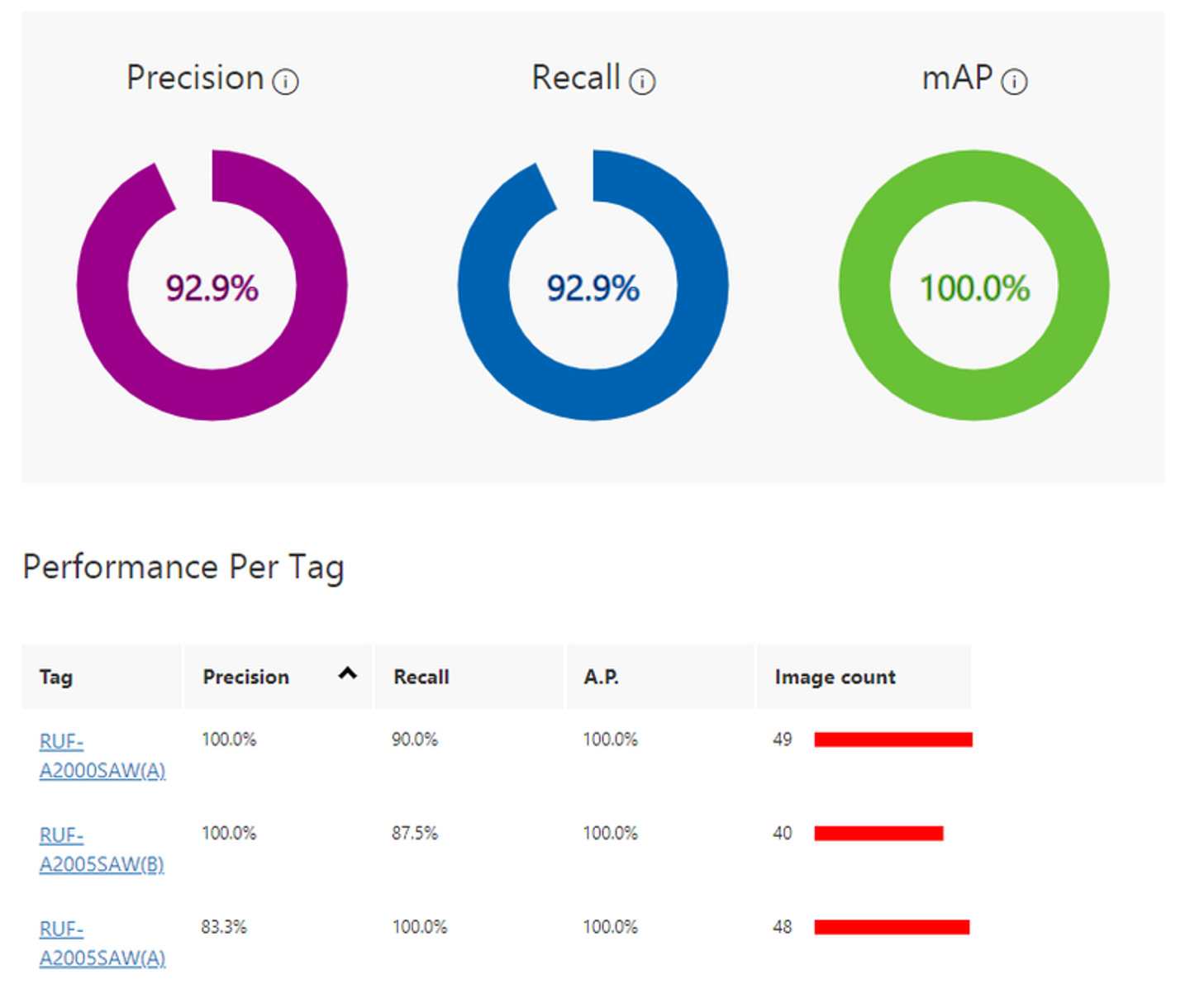 図3はCustom Visionによるカスタムモデルの評価です。評価尺度は次の3つです。