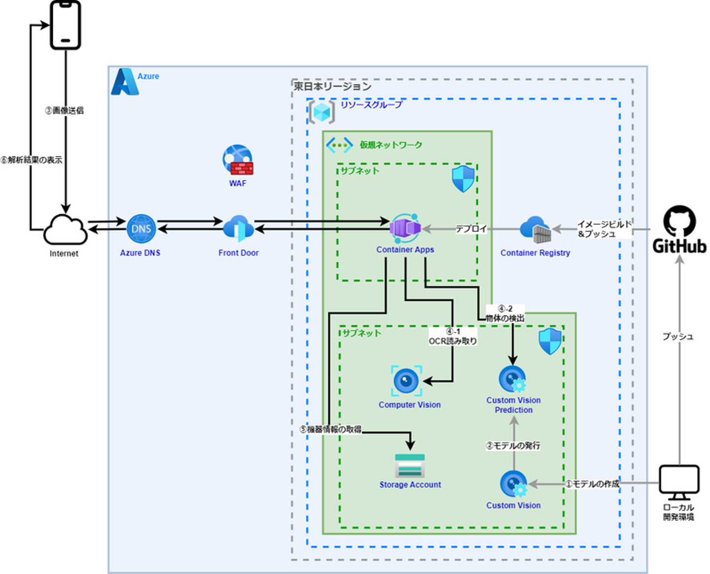 - 撮影した画像(図2)をAzureのContainer Appsにデプロイしたアプリに送信します。