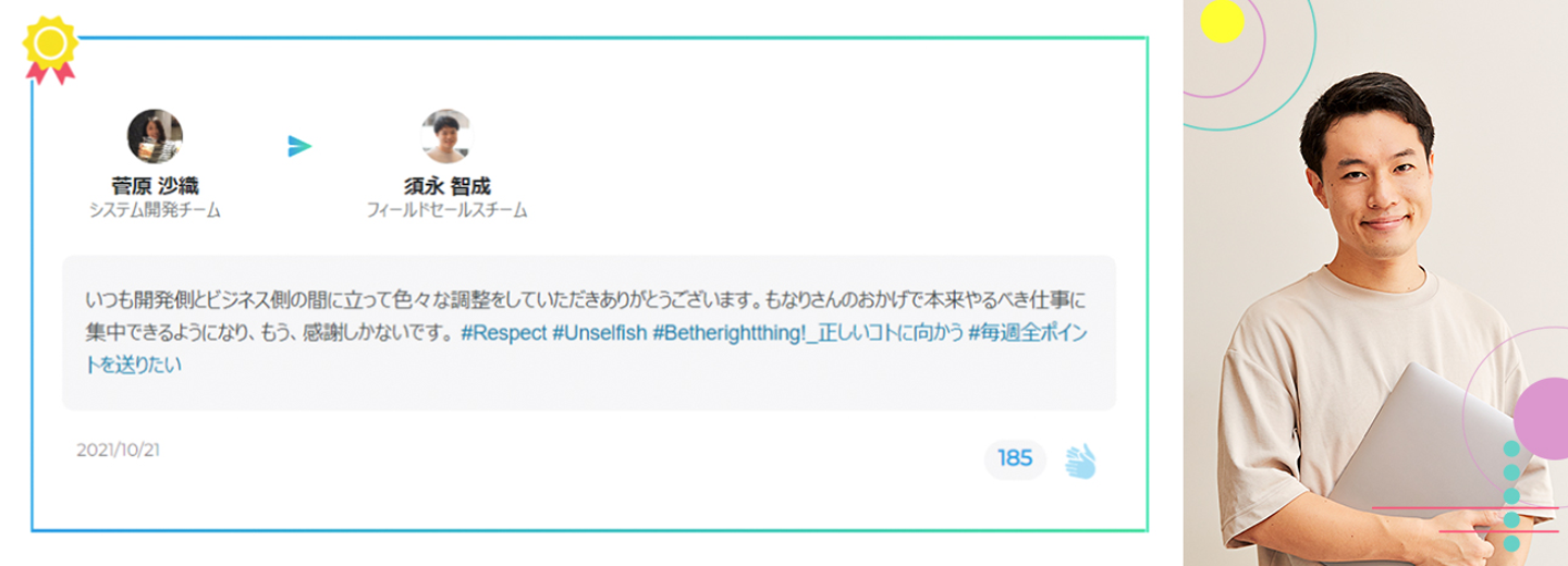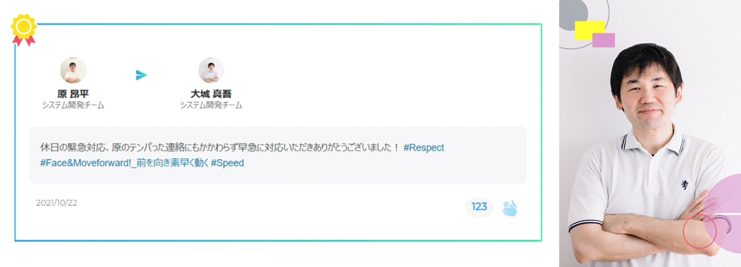 |CEO光岡 コメント iOSのアップデートや様々なバグ対応など、休日の緊急対応含め、圧倒的なスピード感と技術力でお客様と社員を安心させてくれました。大城さんがいるから、僕らも大きく攻めることができていると実感しています。