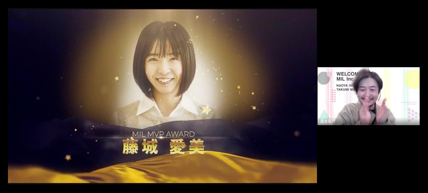🥇 What’s「MIL MVP」? この半期で最も活躍した人物に送る最優秀賞を、代表自らが選定。今回はMVPとして2名が選出されました。選ばれた人には一流の豪華賞品が贈呈されます。