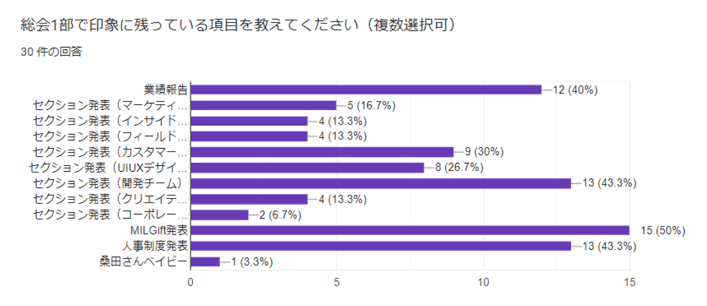 また、MILでは総会終了後にメンバーにアンケートを取り、良かった点や疑問点等のフィードバックをもらい改善することで、総会自体が形骸化しないような「1人ひとりにとって価値のある総会」を目指しています。