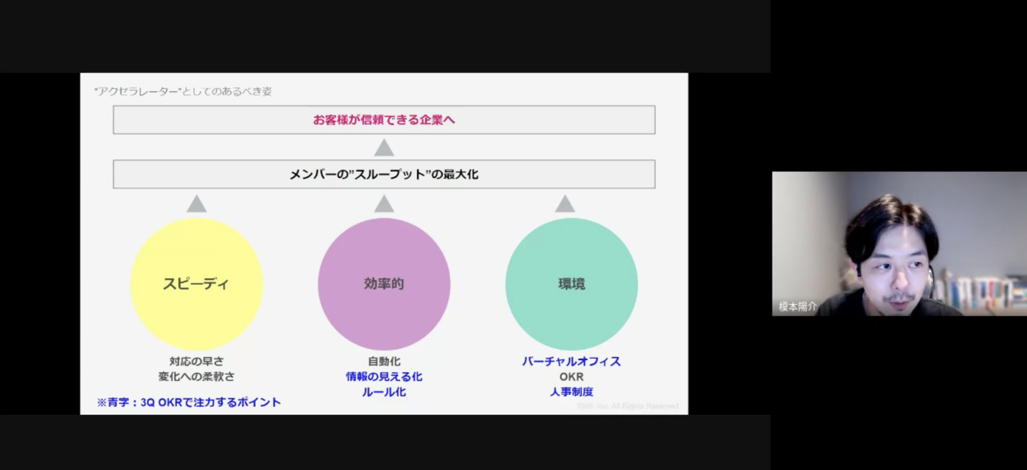 総会の目次 1部(オンライン) ・業績発表 ・各セクションのサマリー ・表彰 ・新設人事制度の発表