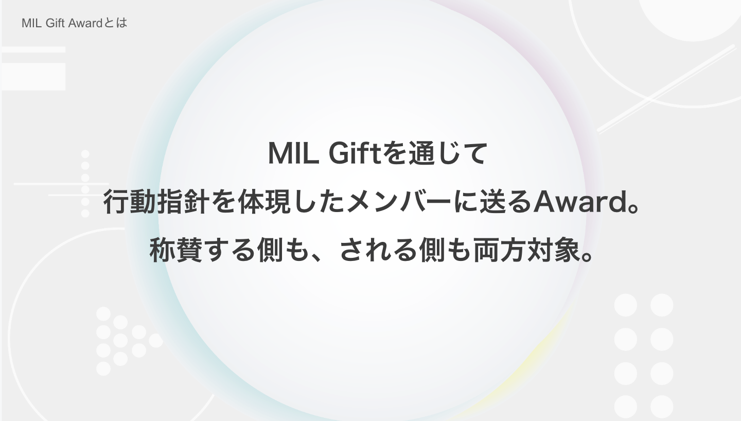 という3つのMILNESSの中から、それぞれを体現しているメンバーに「賞賛」と「感謝」を込めてポイントを送り合うことで「MILらしさ」を相互に評価できる場にしてます。