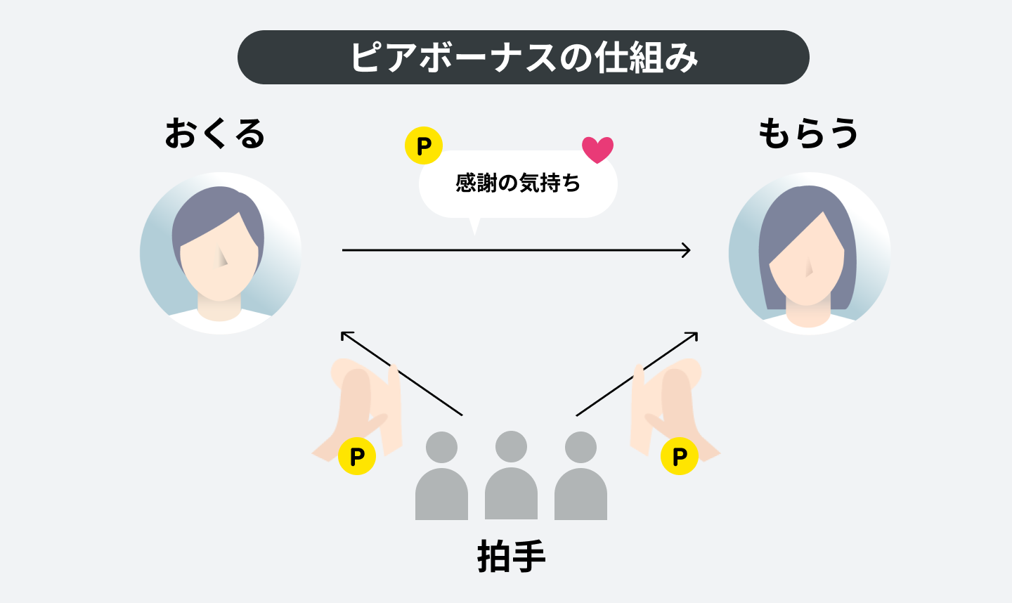 ピアボーナスとは、仲間や同僚を表す「Peer」と報酬を表す「Bonus」を組み合わせた造語で、メンバー同士が相互に報酬(ボーナス)を贈り合える仕組みのことを指します。