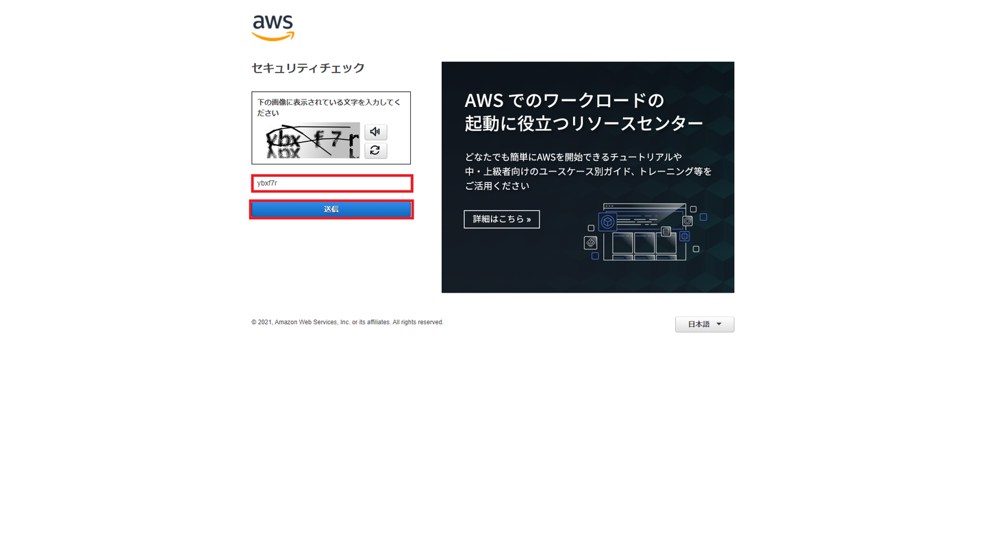 とても読みづらい英数字を頑張って解読して入力したら、[送信]を押します。