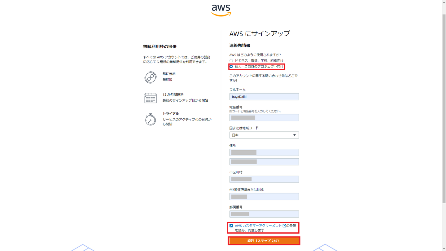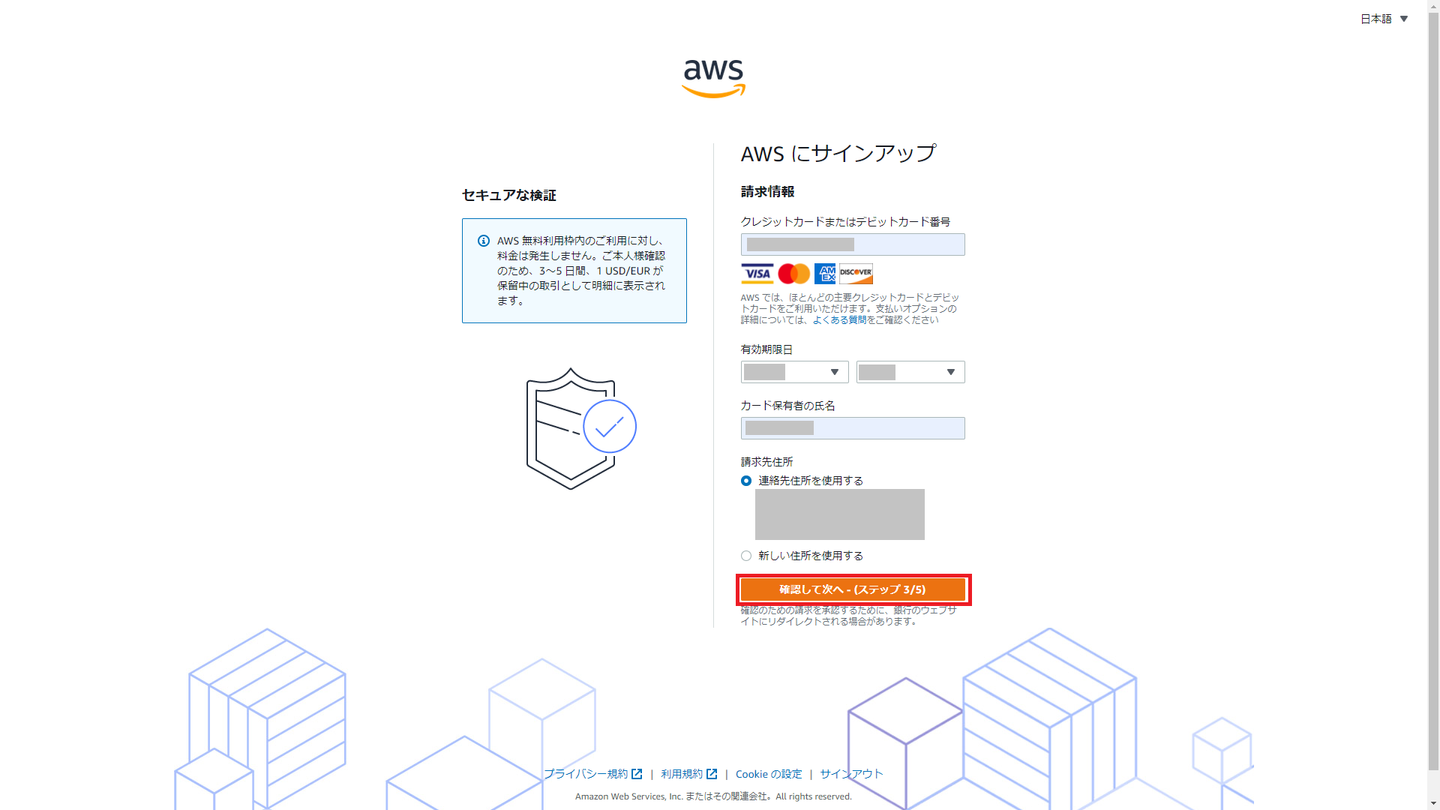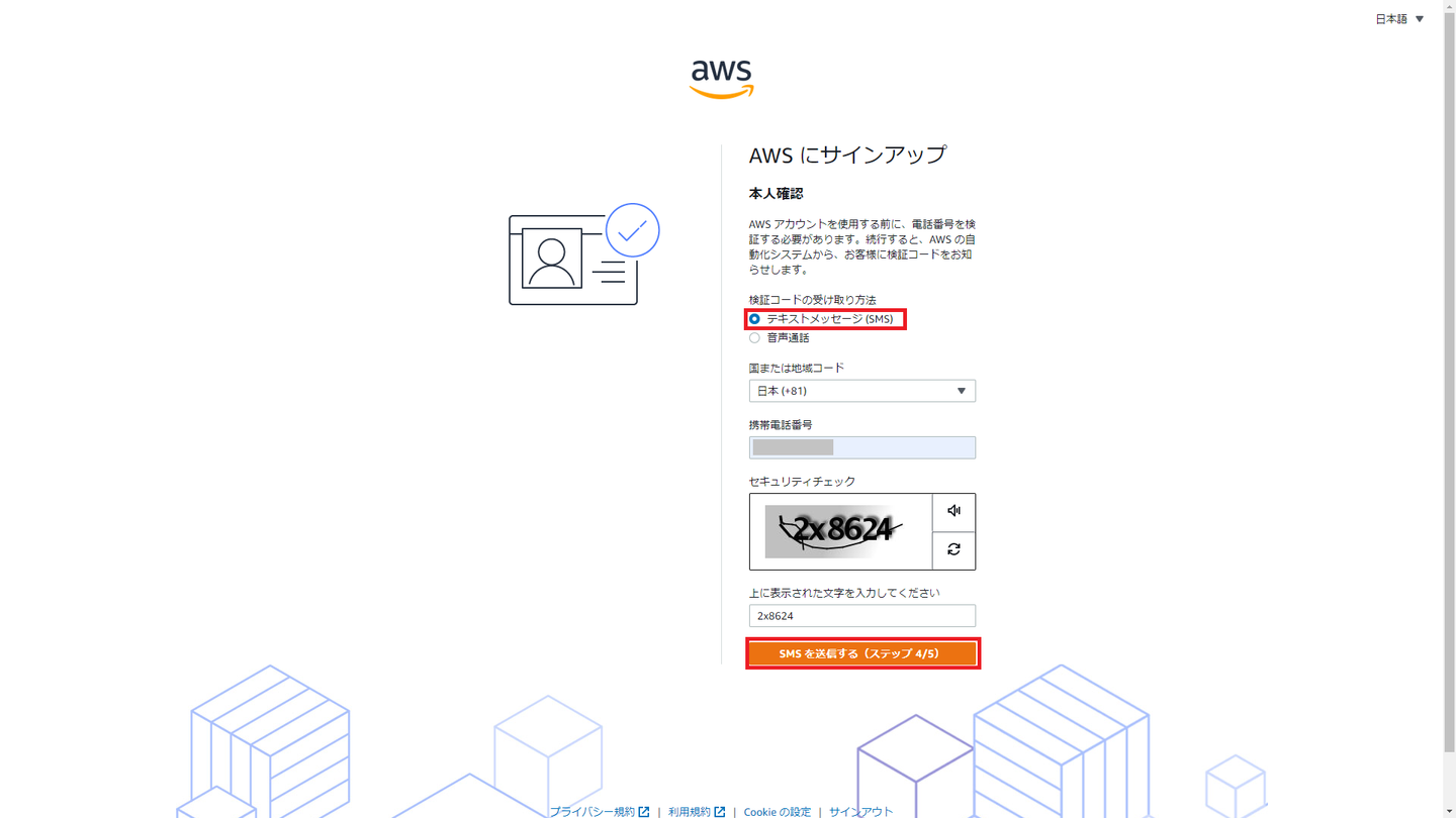 AWSアカウントの登録に際して必要となるものはクレジットカードと携帯電話番号です。