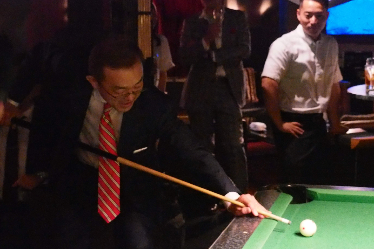 二次会の会場は隠れ家的なバーのモダン・タイムス。カラオケの他、ビリヤードやダーツで思い思いに楽しむ姿が見られました。