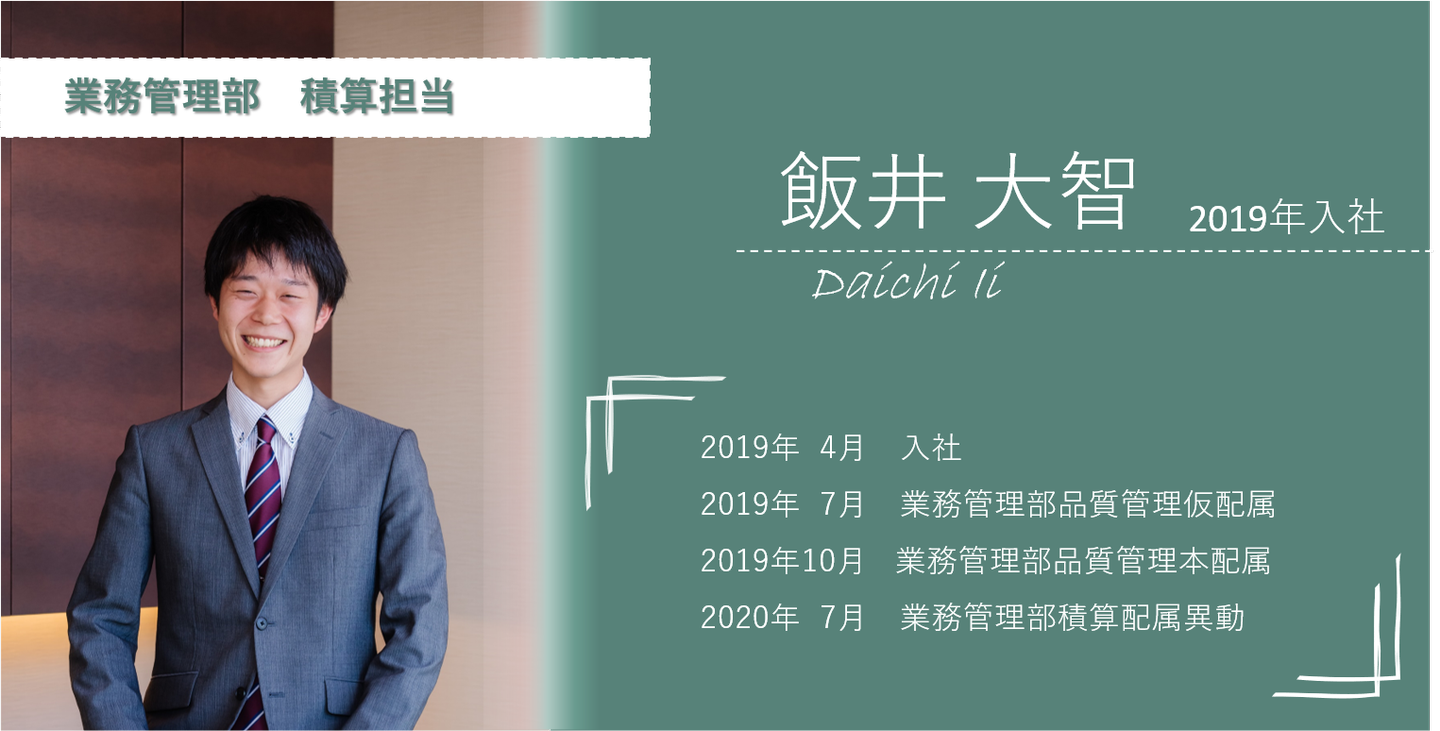 今回お話を伺ったのは、業務管理部積算担当の飯井大智(いいだいち)さん。新卒スタッフで初めて一級建築士という難関資格合格を果たした、今注目の若手スタッフです。現在、社内では建築知識が鍵となるバックオフィスの積算セクションで活躍する飯井さん。そんな飯井さんはなぜAPHを選んだのか、入社した今どんなことを思うのか?インタビューから見えたのは、好きな建築を仕事にする中でもチームでの仕事を大切にする姿でした!