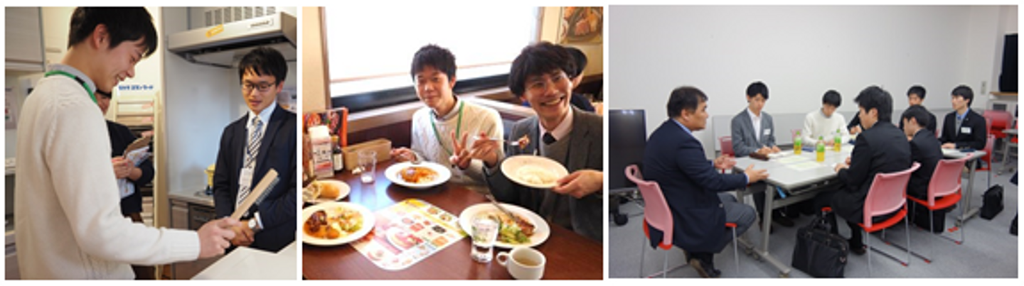 (左:内々定時の飯井さん 右:内定者懇親会に参加する飯井さん)