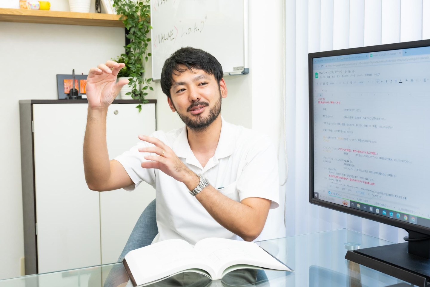 8時に出社し、メールを確認して業務が始まります。その後、メンバーに打ち合わせ前の進捗の確認をし、お客さんとの打ち合わせを行います。私は2-3個案件を担当しているため打ち合わせも多いのですが、残った時間で作業を進め、16時には退社します。子どもがいるためその時間には必ず退社し、保育園に迎えに行っています。