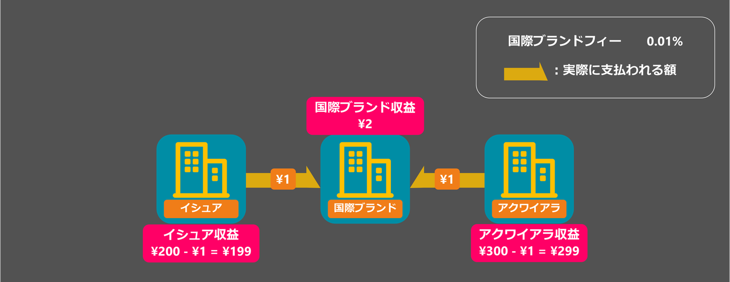 ここで注意すべき点は、上図でイシュアが¥200、アクワイアラが¥300をそれぞれ得ていますが、