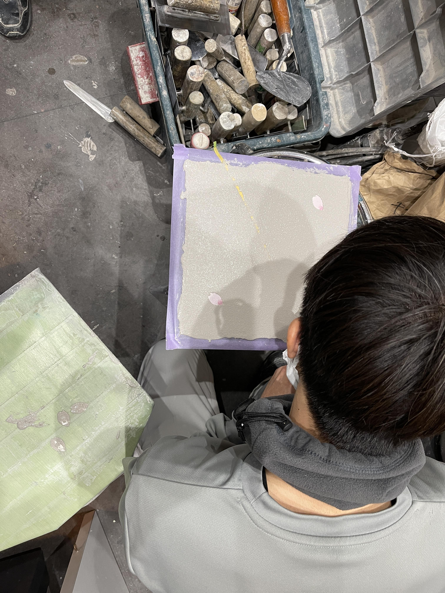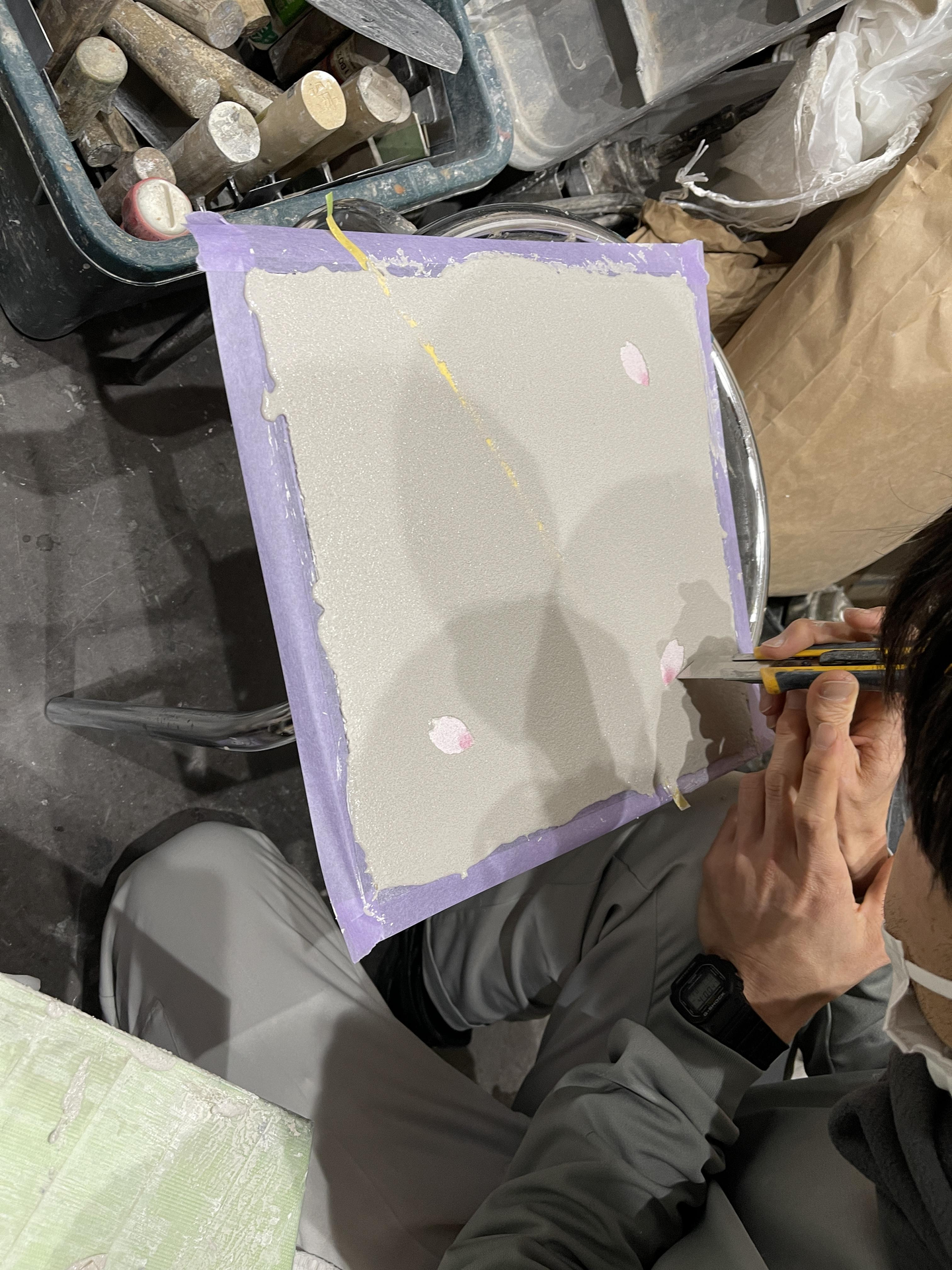 その上に左官の仕上げ材を塗り、乾燥後、型をはがします。